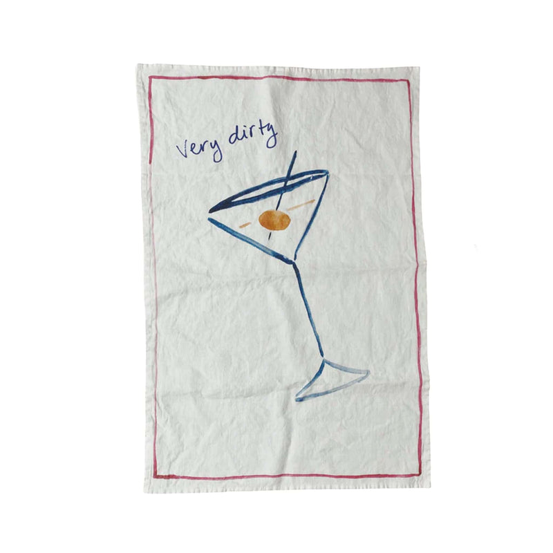 This tea towel is a fun gift for the martini drinker in your life. It’s decorated with a line drawing of a martini glass beneath the phrase ‘very dirty’. We love the red border and little olive floating in the glass.