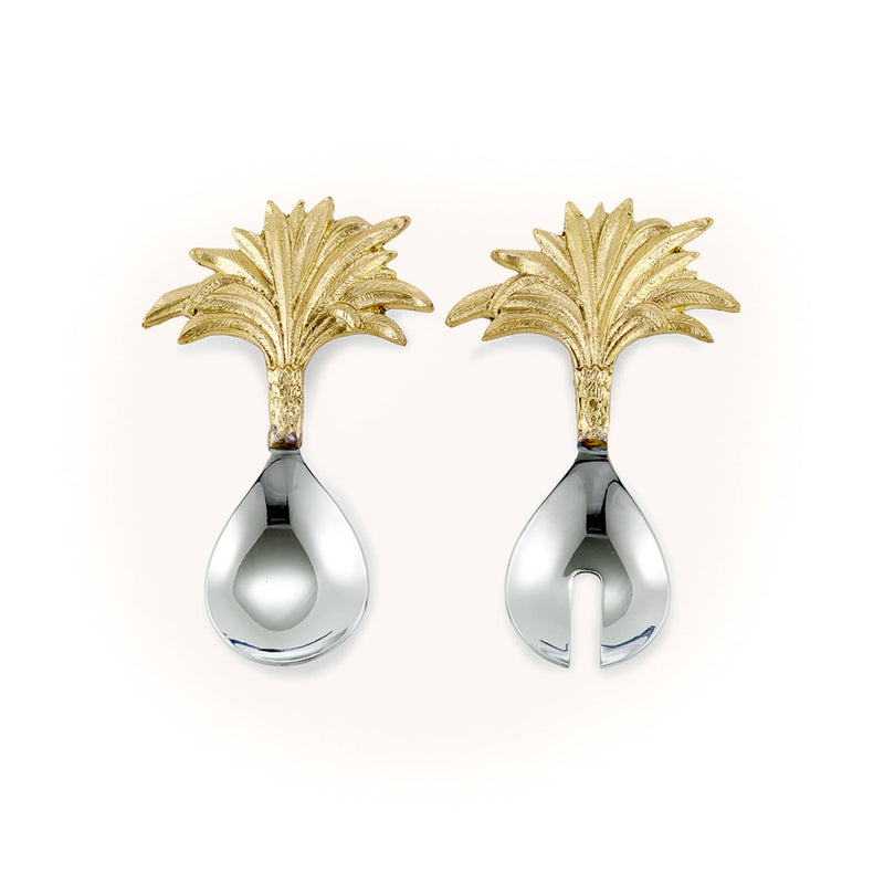 The servers are made from brass and stainless steel. The handles are shaped like palm trees, adding a touch of Art Deco glamour to your table.
