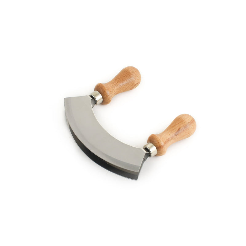 The knife has two beechwood handles for greater chopping control. Hold one in each hand and rock the blade back and forth over your herbs. The sharp, curved blades will chop your herbs in seconds.