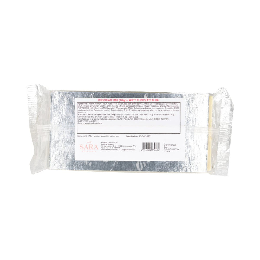 Dubai-style chocolate is the cult confectionery that has taken the world by storm. This bar is made with silky smooth white chocolate. Let it melt on your tongue for a moment of pure bliss.