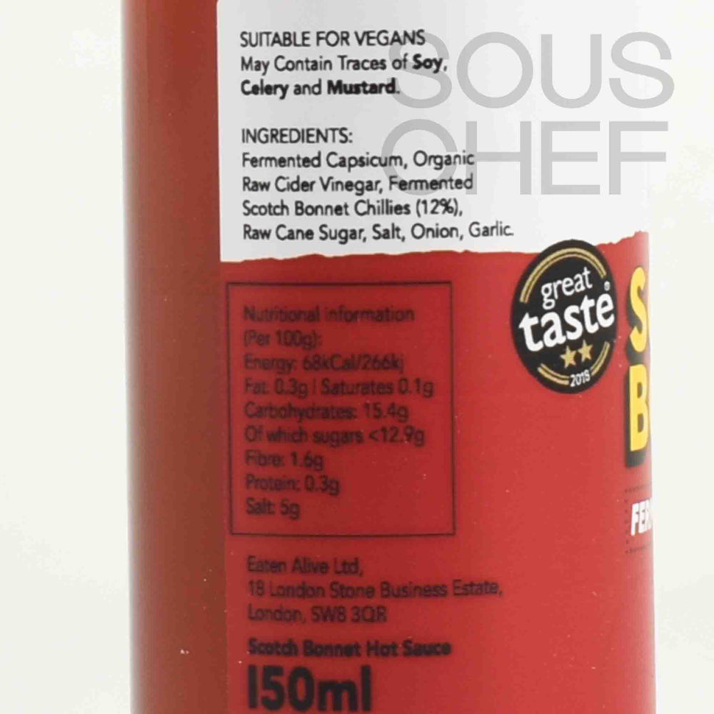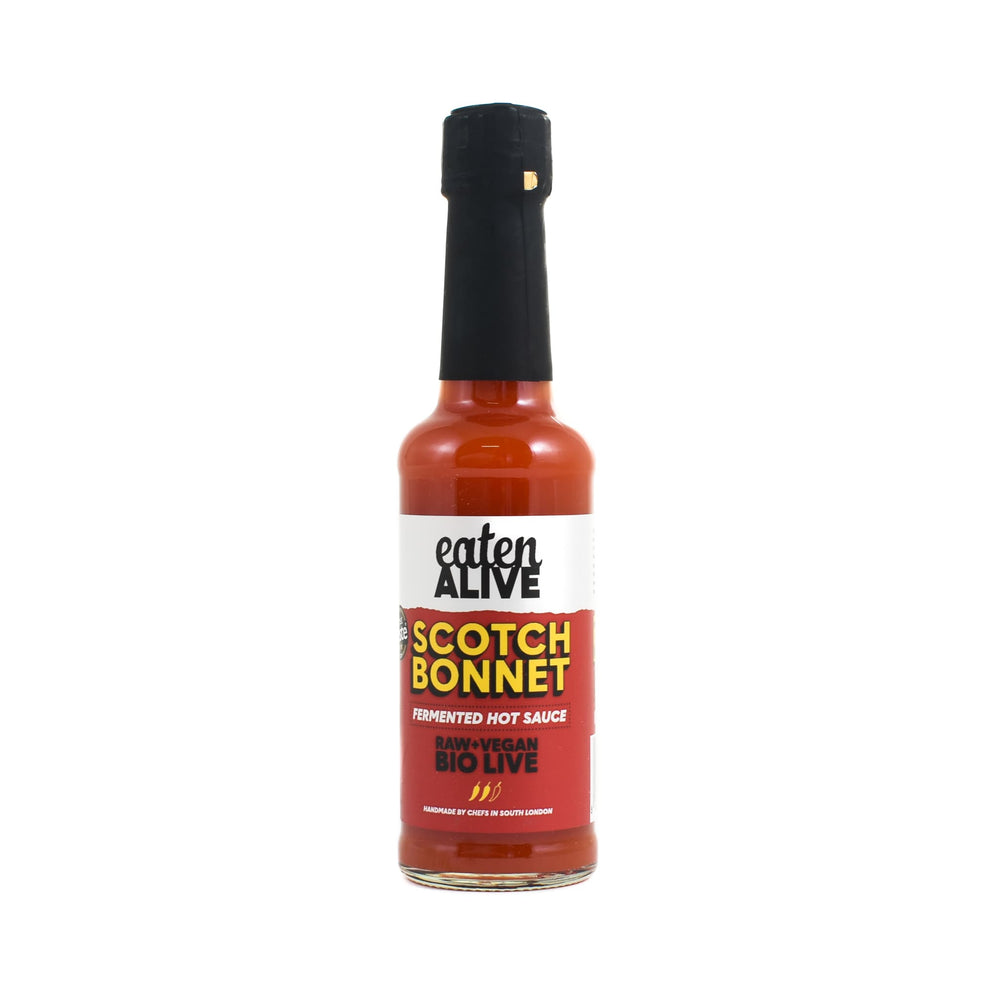 Eaten Alive Scotch bonnet hot sauce is 100% natural, vegan and bio-live.
