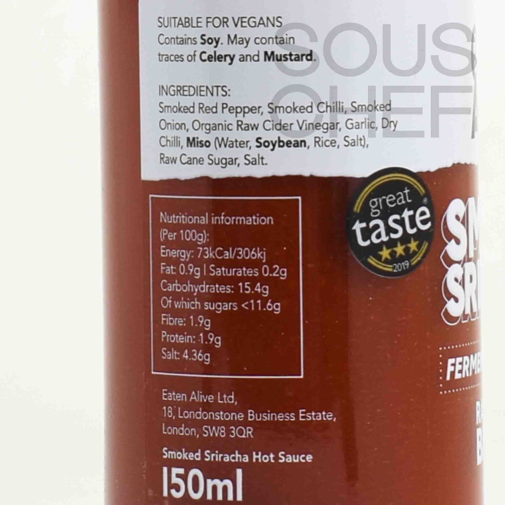 Eaten Alive smoked Sriracha hot sauce is 100% natural, vegan and bio-live.
