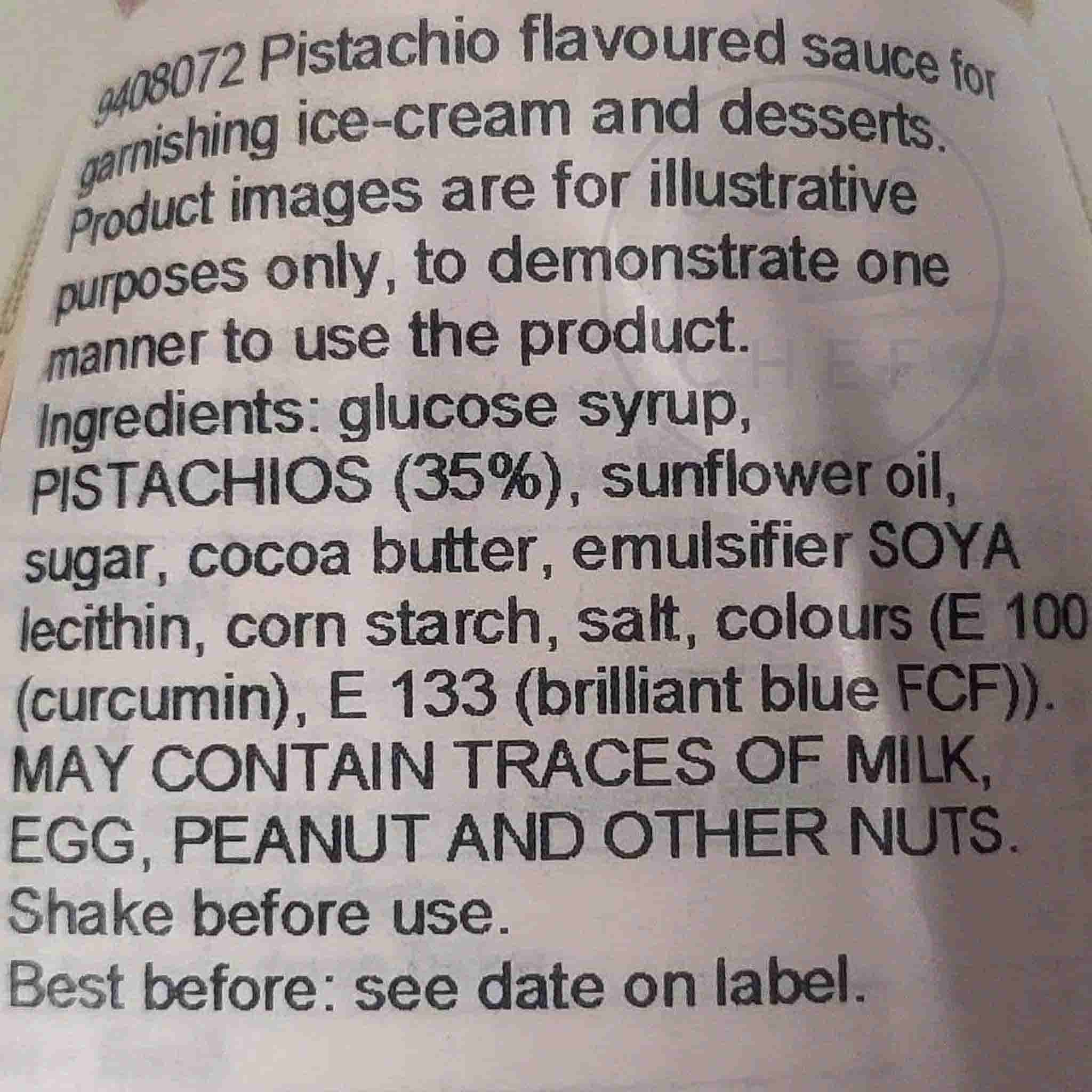 Product formulations and details may change. For the latest ingredients and allergen information always check product packaging prior to consumption. Ingredients: Glucose syrup, pistachios (35%), sunflower oil, sugar, cocoa butter, emulsifier soya lecithin, corn starch, salt, colours E100 (turmeric) - E133 (fd&c blue n. 1 - brilliant blue fcf)