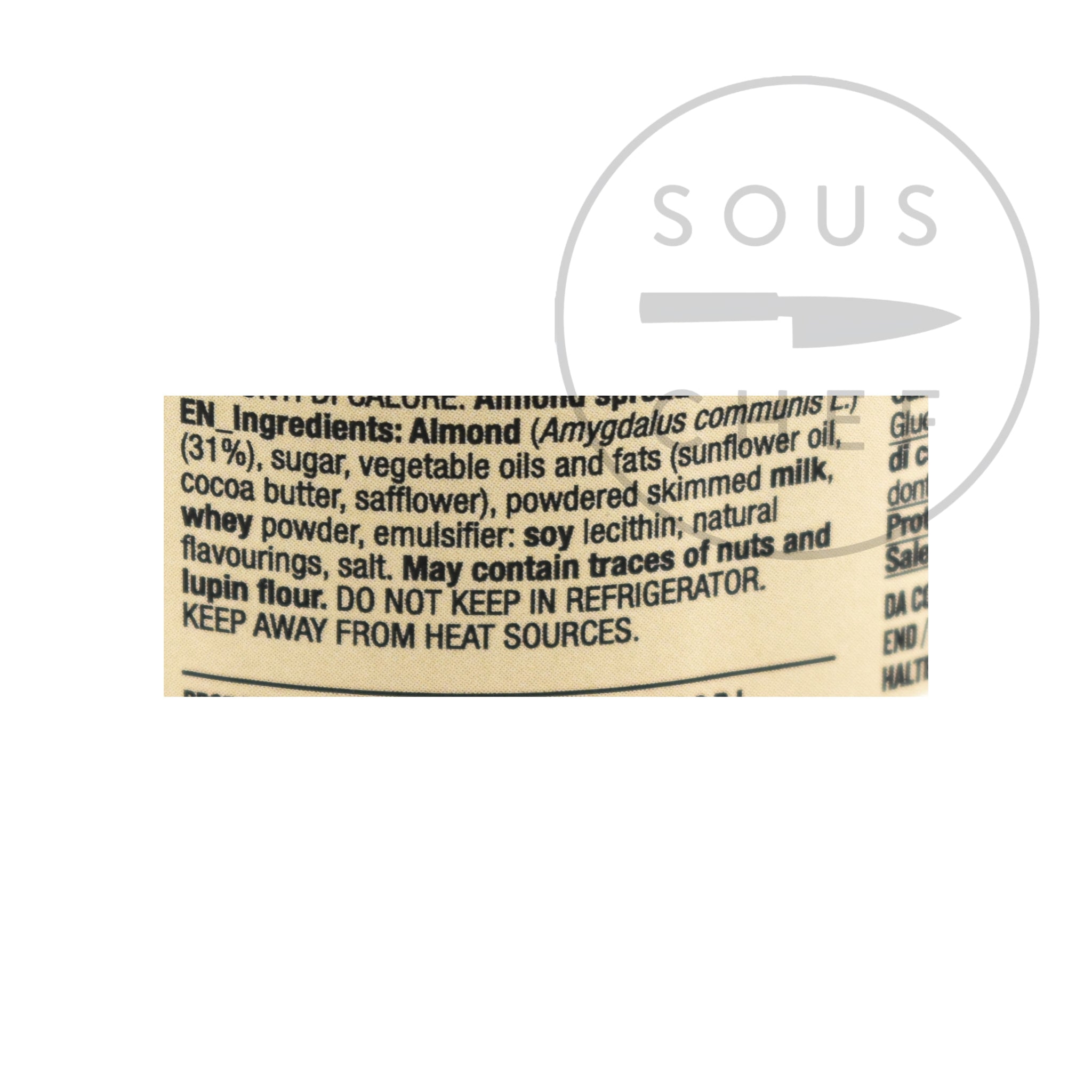 Product formulations and details may change. For the latest ingredients and allergen information always check product packaging prior to consumption. Ingredients: Almond (amygdalus communis L.) (31%), sugar, vegetable oils and fats (sunflower oil, cocoa butter, safflower), powdered skimmed milk, whey powder, emulsifier: soy lecithin; natural flavourings, salt.