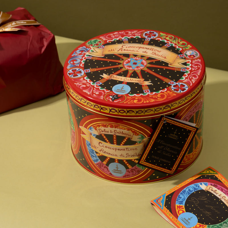 This panettone is flavoured with chocolate and candied orange. It’s a festive collaboration between Fiasconaro and Dolce & Gabbana.