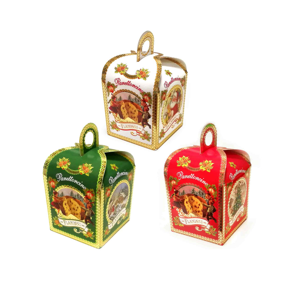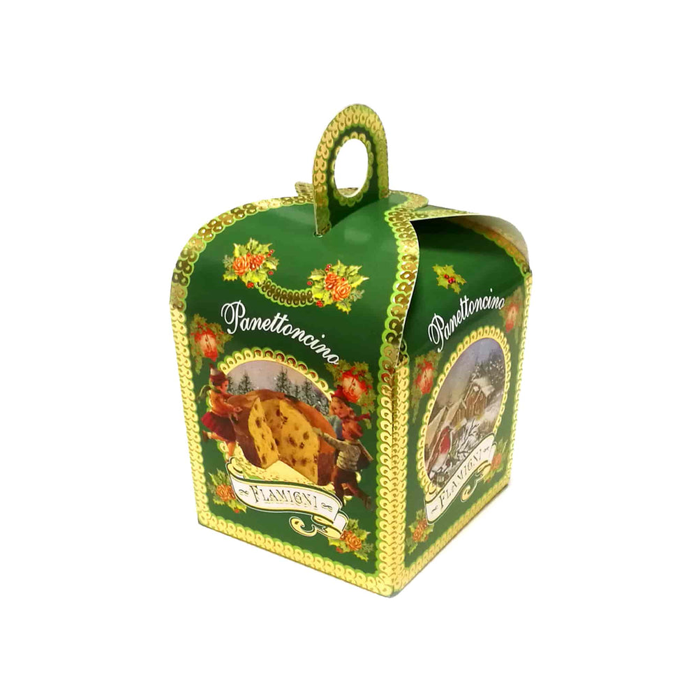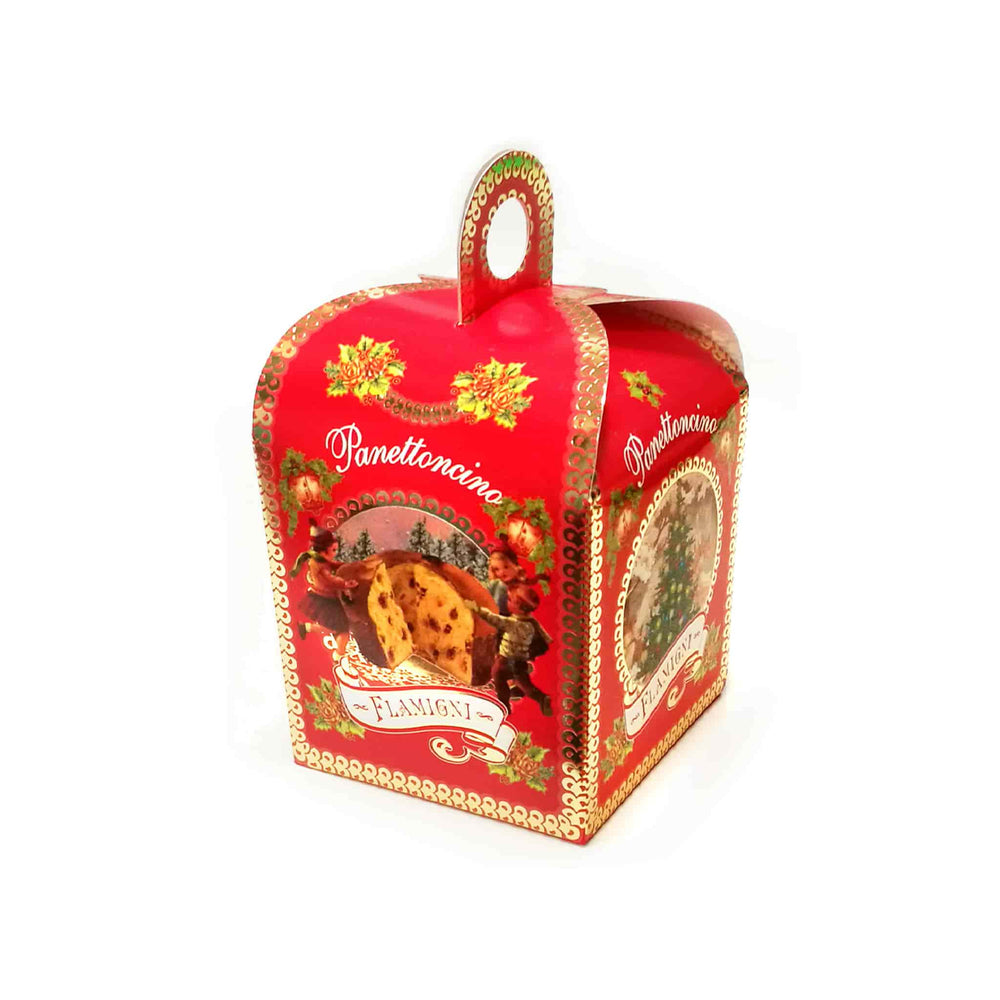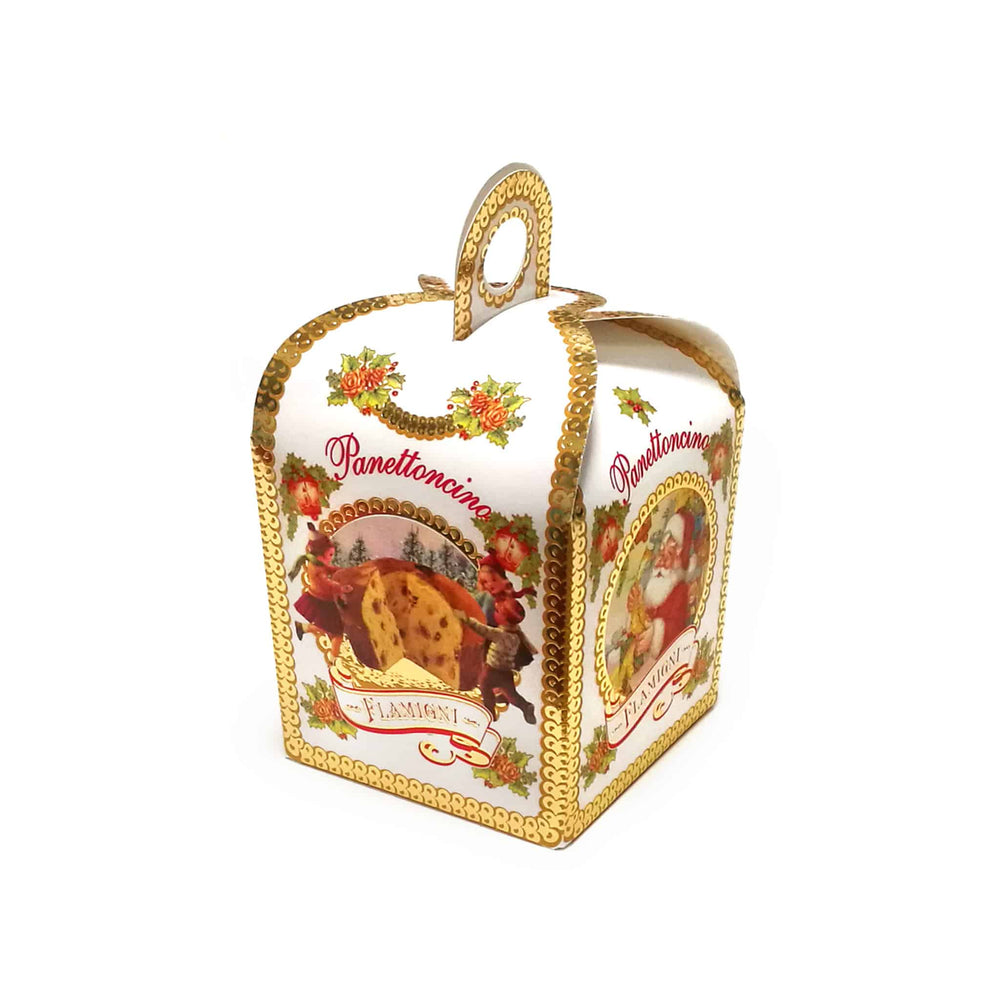 Flamigni’s mini panettone is presented in a beautifully illustrated gift box with a little loop at the top so you can hang it from your Christmas tree.