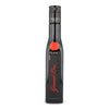 The oil is presented in a black bottle with a red stamp. The dark glass protects the oil from sunlight, preserving its flavour.