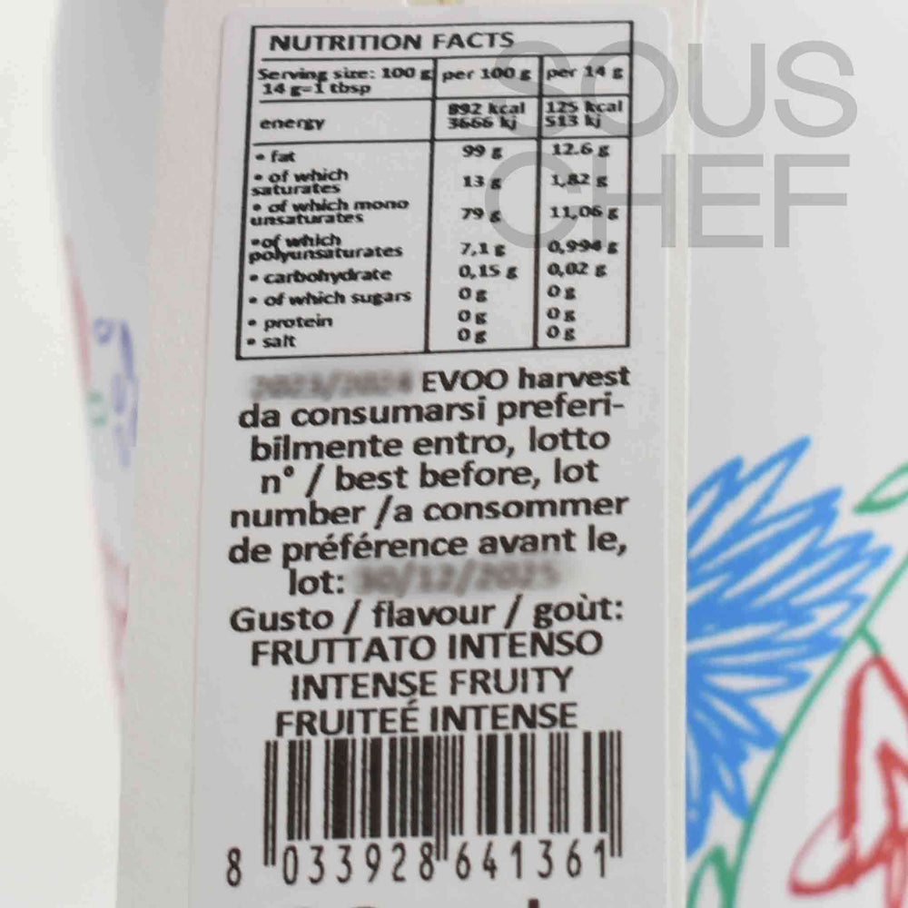 Product formulations and details may change. For the latest ingredients and allergen information always check product packaging prior to consumption. Ingredients: 100% extra virgin olive oil – monocultivar coratina