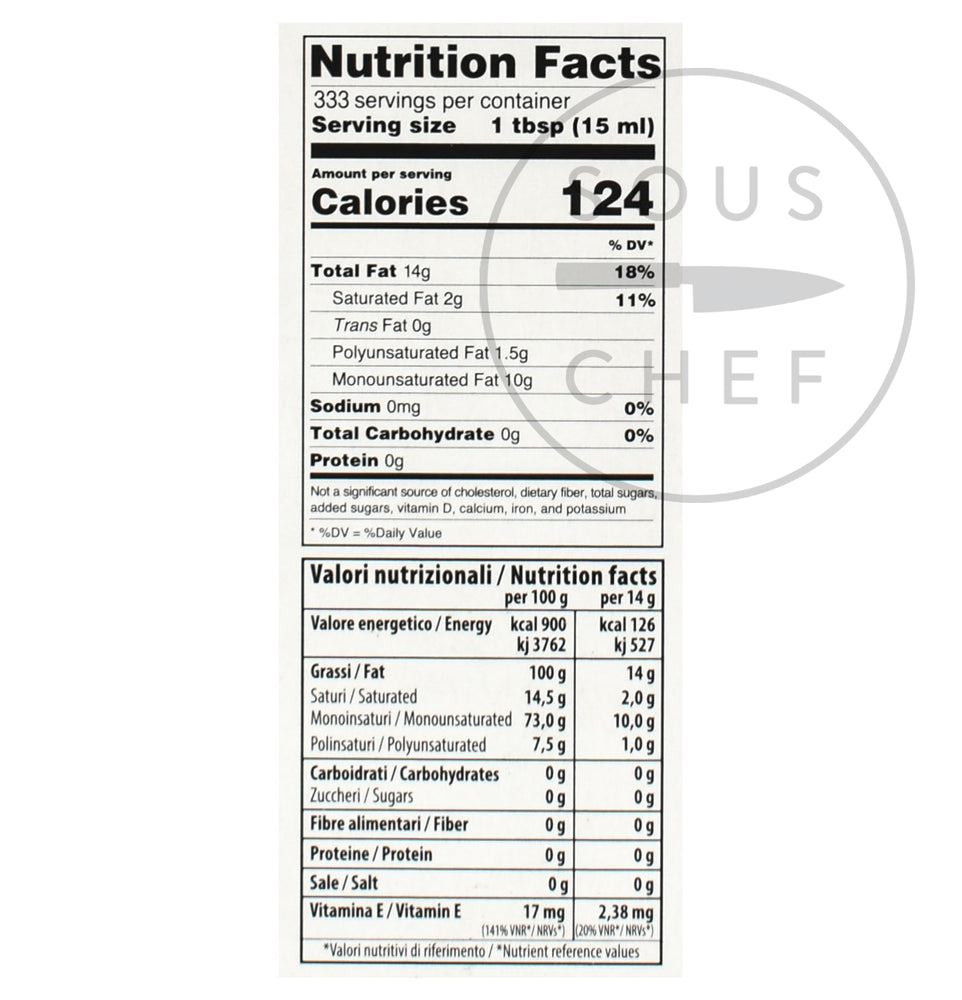 Product formulations and details may change. For the latest ingredients and allergen information always check product packaging prior to consumption. Ingredients: extra virgin olive oil.