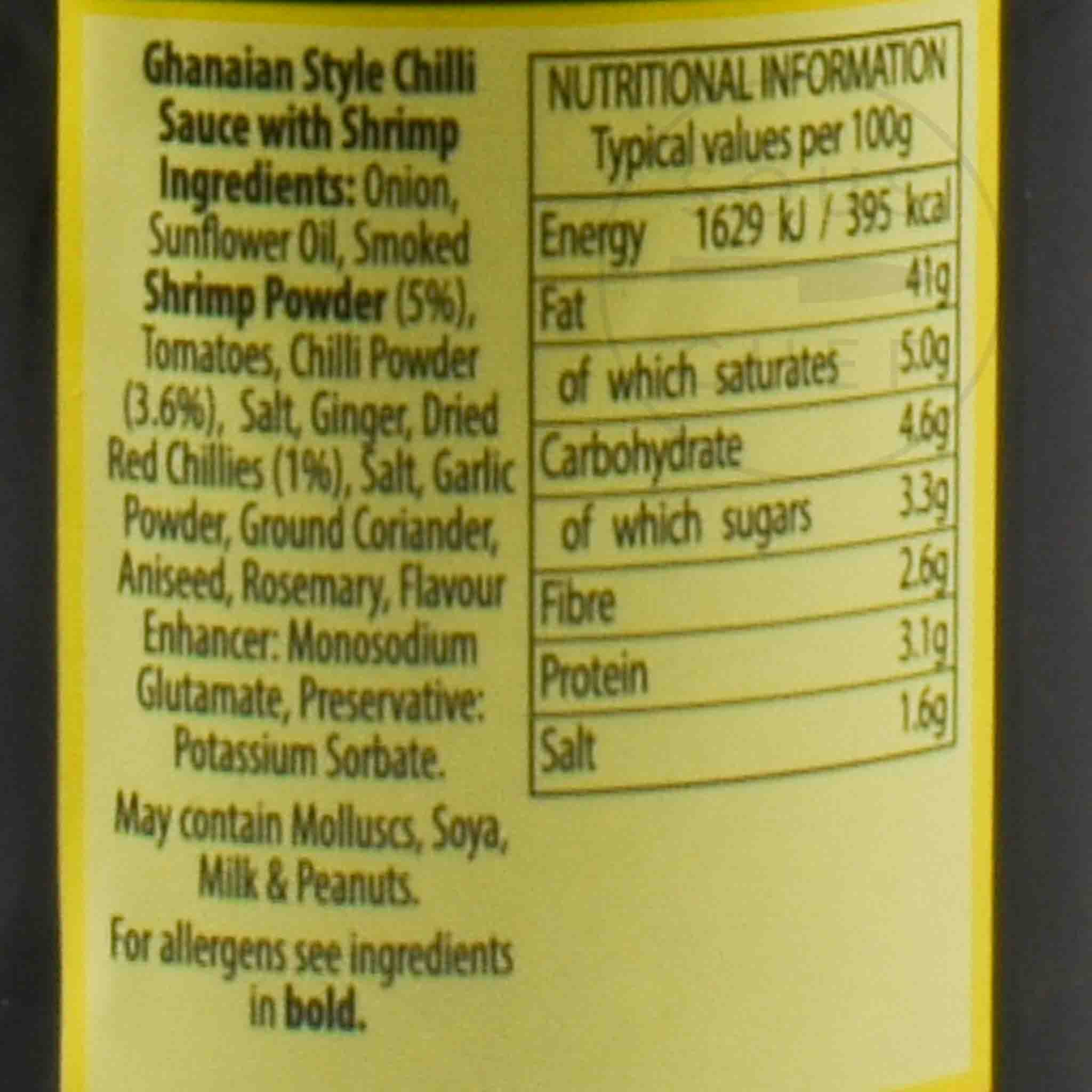 Product formulations and details may change. For the latest ingredients and allergen information always check product packaging prior to consumption. Ingredients: onion, sunflower oil, smoked shrimp powder, tomatoes, chilli powder, salt, ginger, dried red chillies, salt, garlic powder, ground coriander, aniseed, rosemary, flavour enhancer: monosodium glutamate, preservative: potassium sorbate.