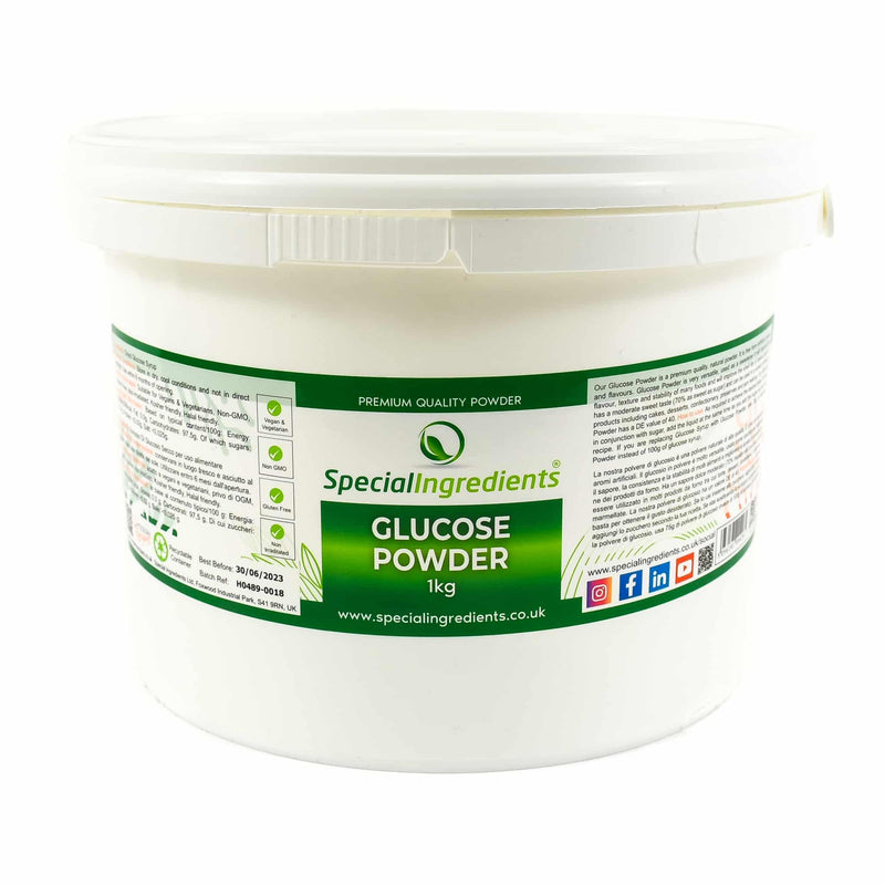 Glucose powder is a natural sweetener that also improves the texture and shelf-life of food. It is ideal for use in desserts, cakes, confectionery and preserves as a sweetener and preservative.