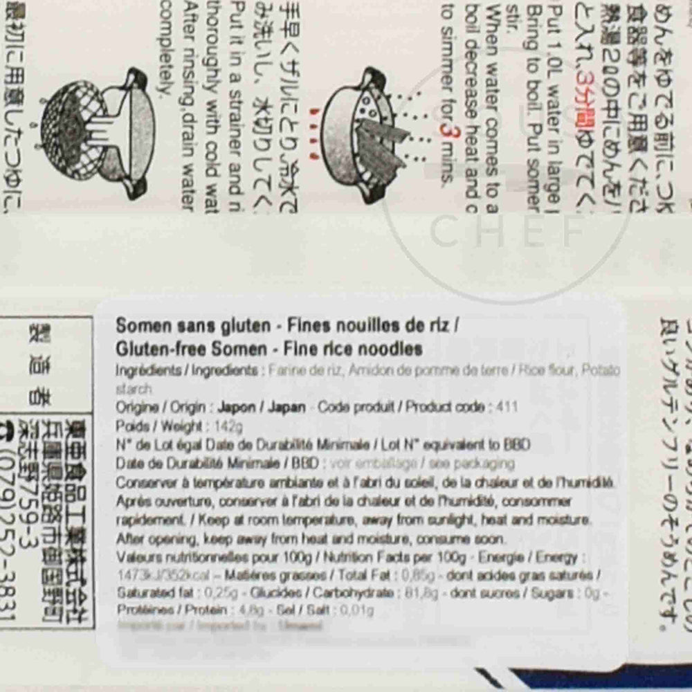 These gluten-free somen fine rice noodles are an alternative to wheat varieties. The thin and chewy noodles are fantastic in chilled soups. Or serve with a traditional dipping sauce of soy and mirin, topped with fresh ginger and chives.