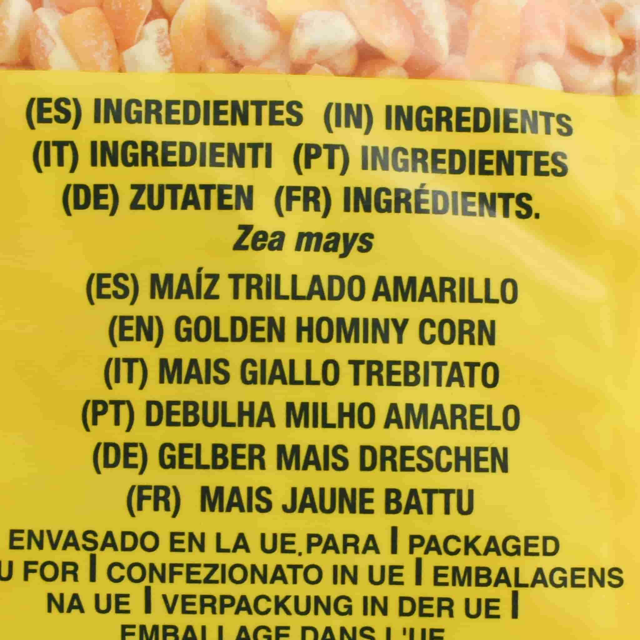 Golden hominy is a staple of Latin American cuisine. You will find it in soups, stews and braised meat dishes. Made from dried corn kernels (maize), golden hominy has a sweeter taste than milder white hominy.