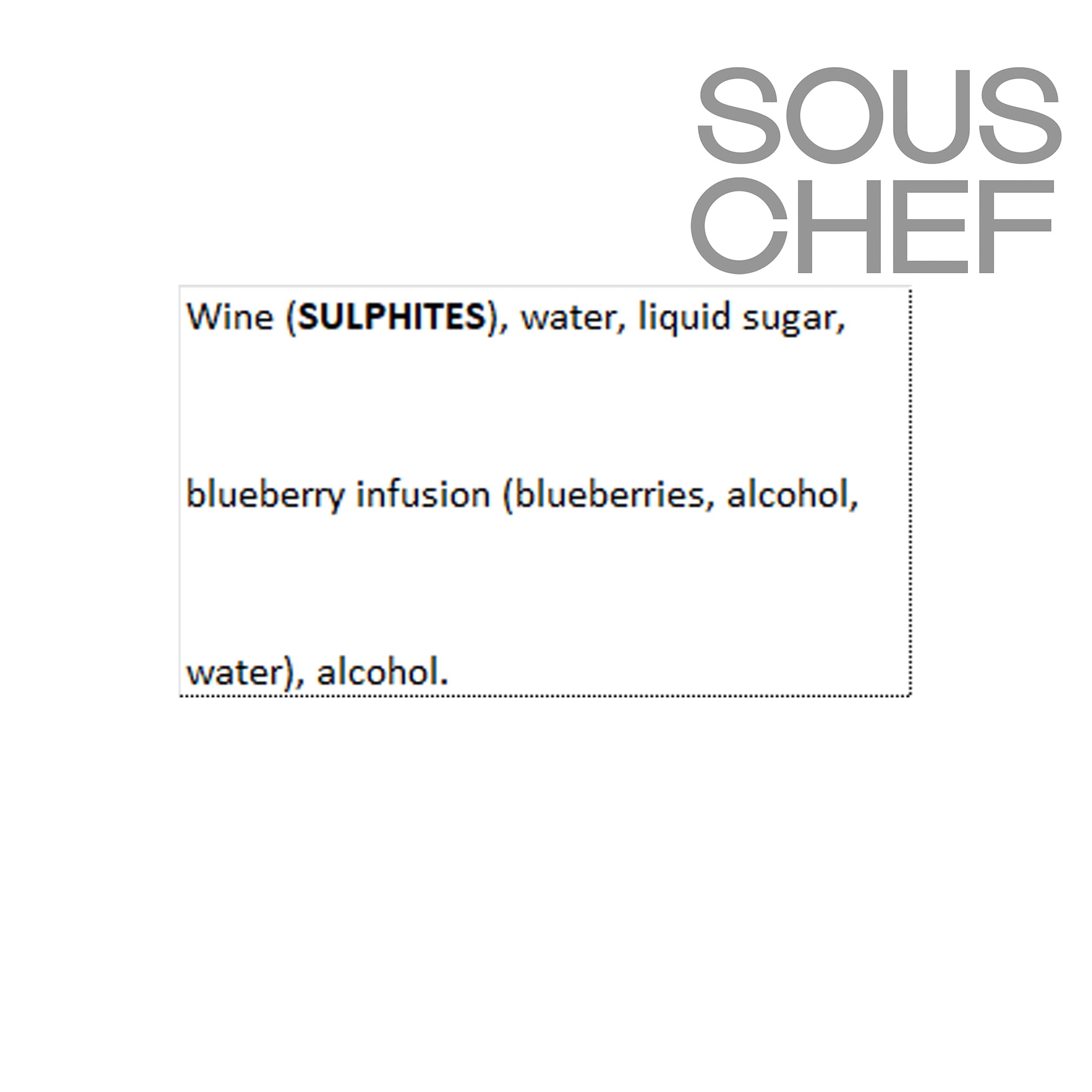 Product formulations and details may change. For the latest ingredients and allergen information always check product packaging prior to consumption. Ingredients: Wine (sulphites), water, liquid sugar, blueberry infusion (blueberries, alcohol, water), alcohol.