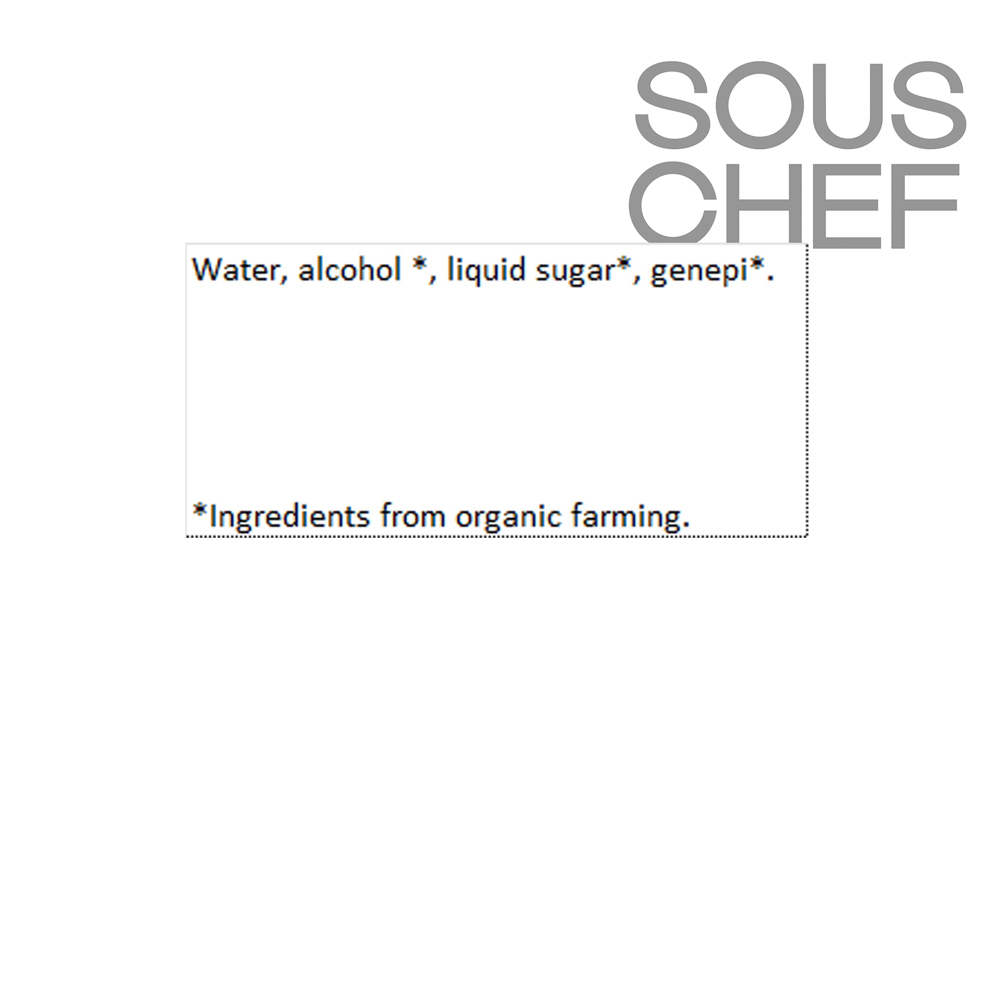 Product formulations and details may change. For the latest ingredients and allergen information always check product packaging prior to consumption. Ingredients: Water, alcohol *, liquid sugar *, genepi * * products from organic farming