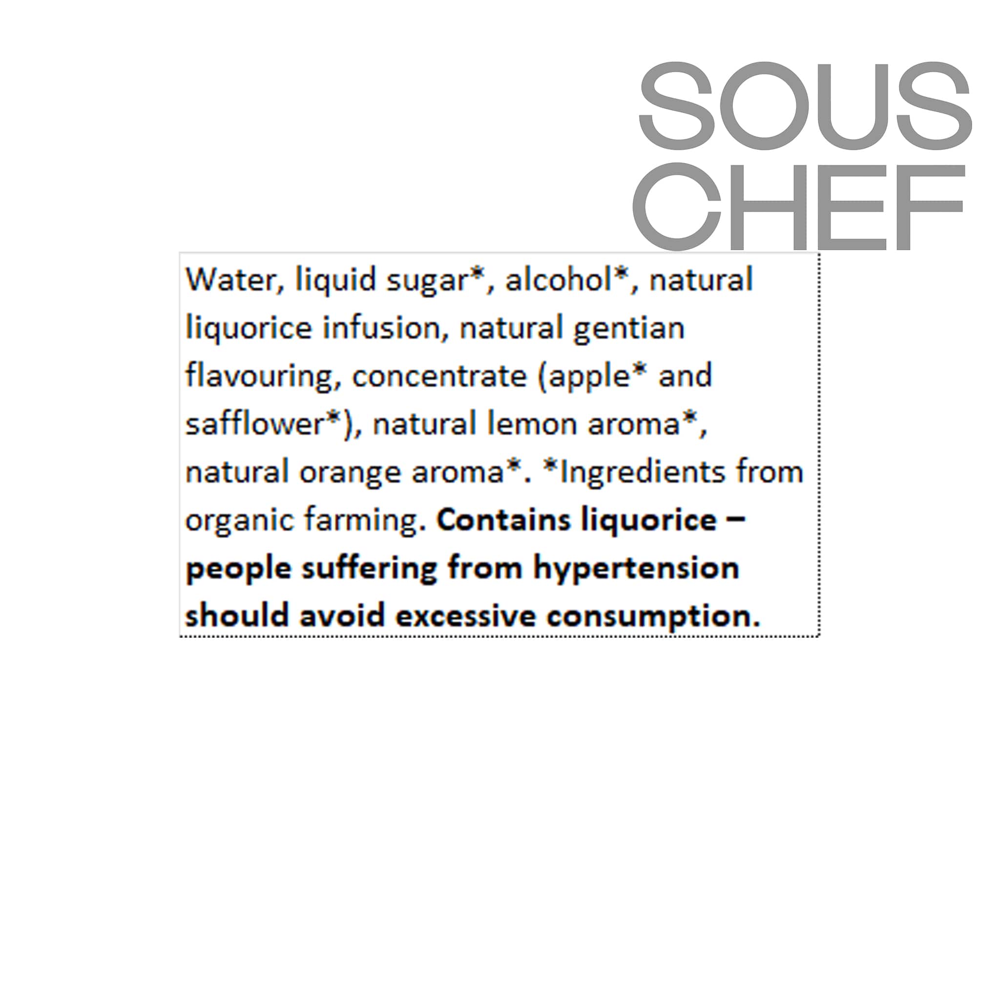 Product formulations and details may change. For the latest ingredients and allergen information always check product packaging prior to consumption. Ingredients: Water, liquid sugar*, alcohol*, natural gentian flavouring with other natural flavourings, concentrate (apple* and safflower).