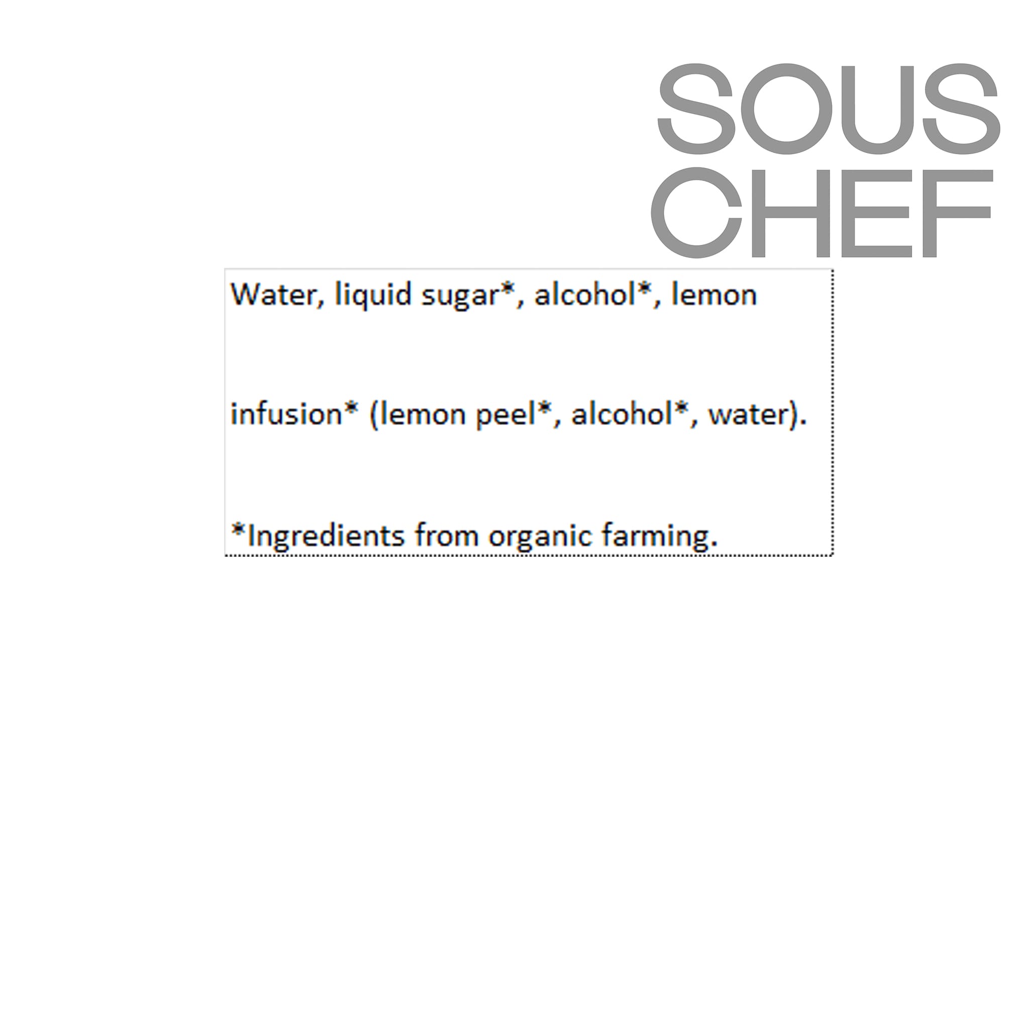 Product formulations and details may change. For the latest ingredients and allergen information always check product packaging prior to consumption. Ingredients: Water, liquid sugar*, alcohol*, lemon infusion* (lemon peel*, alcohol*, water). *products from organic farming.