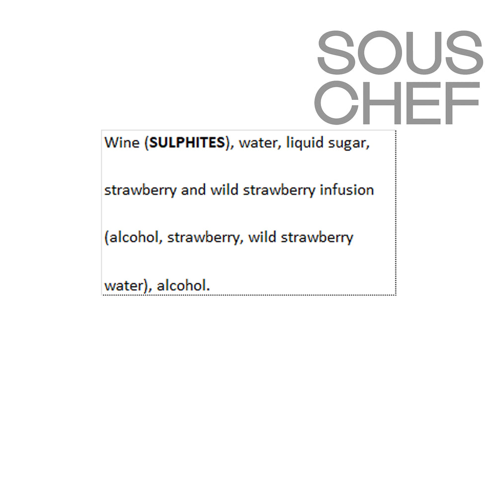 Product formulations and details may change. For the latest ingredients and allergen information always check product packaging prior to consumption. Ingredients: Wine (sulphites), water, liquid sugar, strawberry and wild strawberry infusion (alcohol, strawberry, wild strawberry water), alcohol