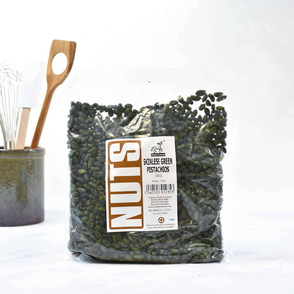 These green skinless pistachios are a beautiful bright green colour with a distinctive sweet, pistachio taste. The skins have been removed taking the hassle out of peeling pistachios.