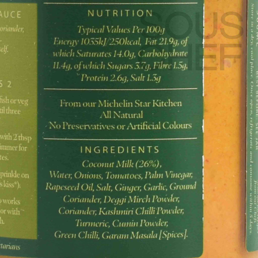 Product formulations and details may change. For the latest ingredients and allergen information always check product packaging prior to consumption. Ingredients: Coconut milk powder (26%) [coconut milk, tapioca starch, rice hull powder], water, onions, tomatoes, palm vinegar, rapeseed oil, salt, ginger, garlic, ground coriander, deggi mirch powder, coriander, kashmiri chilli powder, turmeric, cumin powder, green chilli, garam masala [spices].