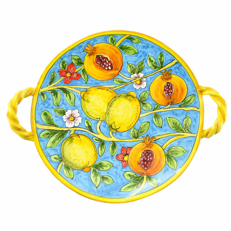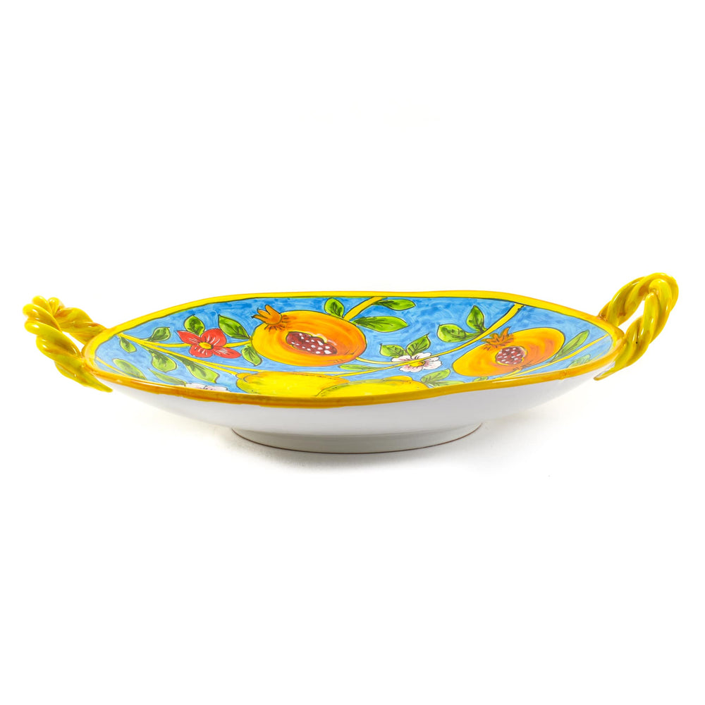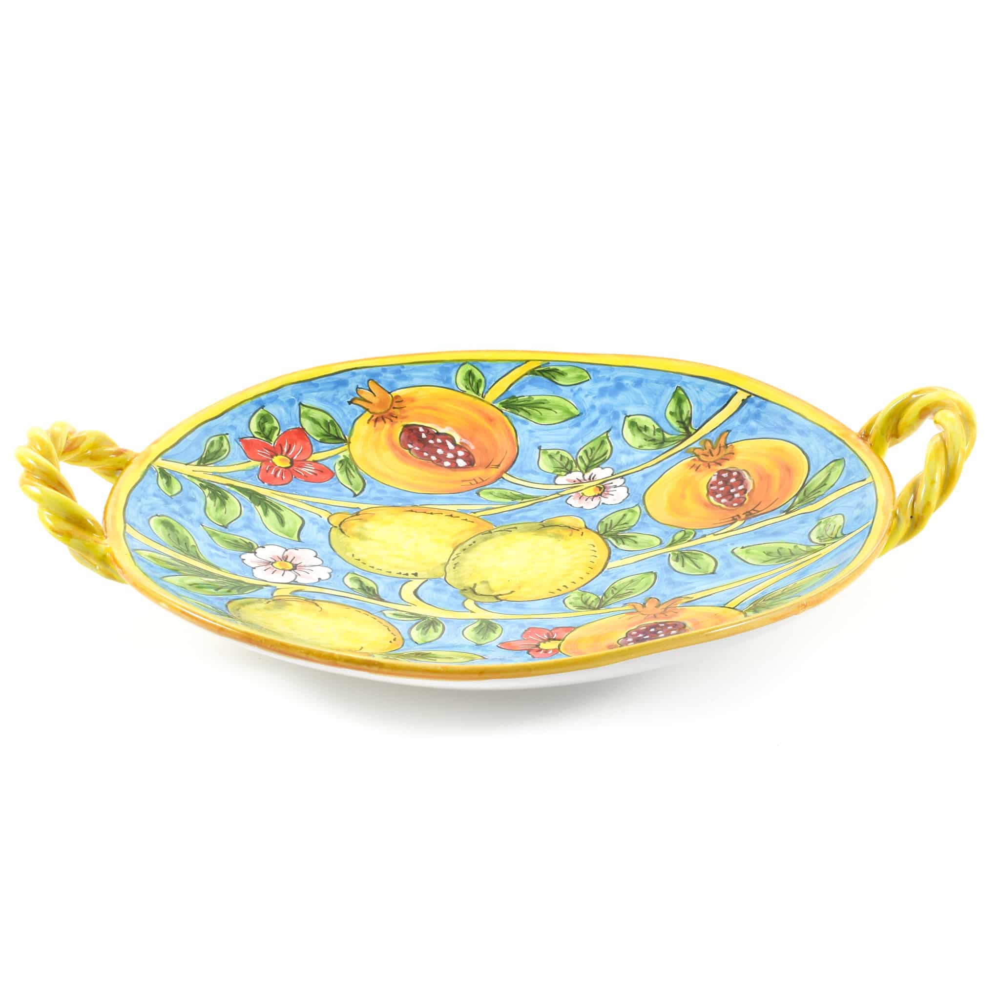 Hand Painted Centrepiece Dish - Pomegranates & Lemons, 35cm