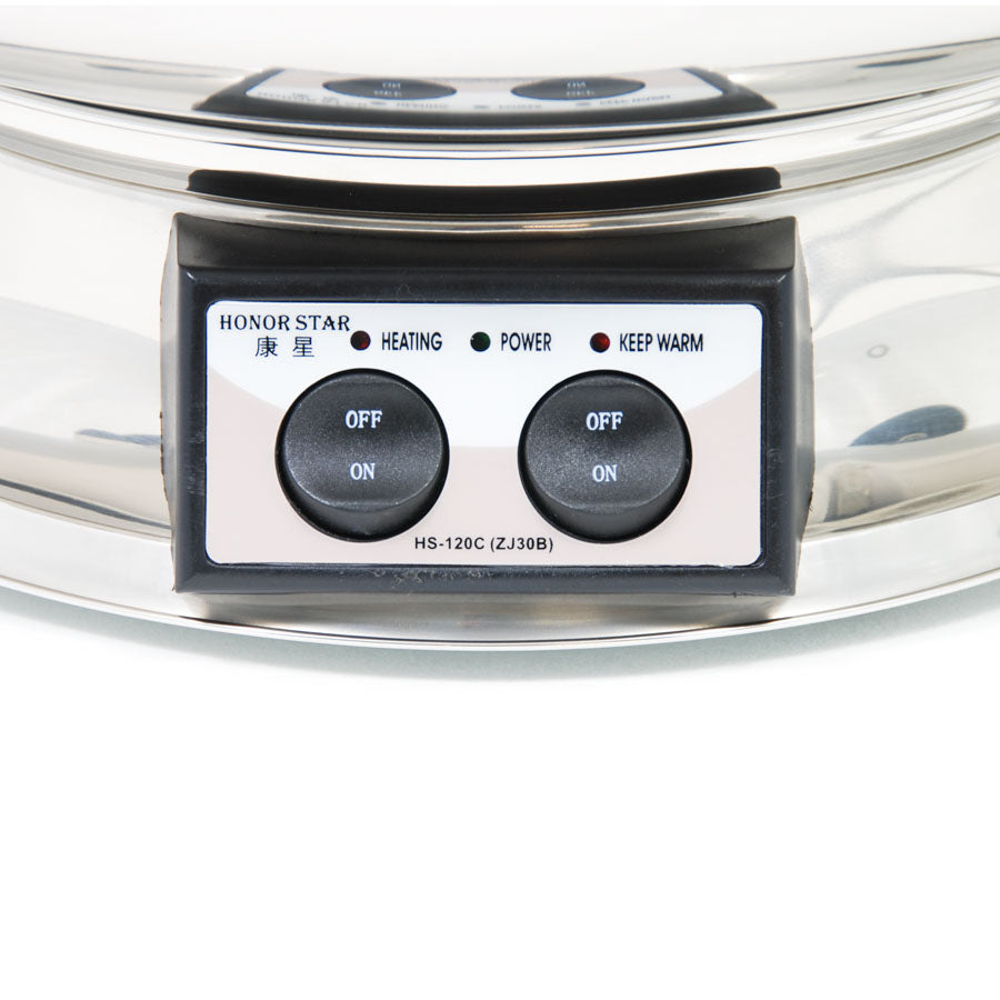 This electric table-top hot pot is for cooking and serving traditional Chinese hot pot, steamboat, or Chinese fondue at the table. Chinese hot pot originated in Mongolia, Northern China, over 1,000 years ago, and is enjoyed across east Asia. The hot pot is classically served as a large bowl of broth at the centre of a table, often with two separate sections, one hot and spicy, and one mild and fragrant - easy with this table-top hot pot.