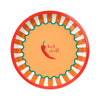 Made from metal, the tray is lightweight and easy to clean. The vibrant colours are sure to stand out on your table. The tray has a bright red rim and orange striped border. In the centre, there’s a red chilli and the phrase ‘Hot Stuff’.