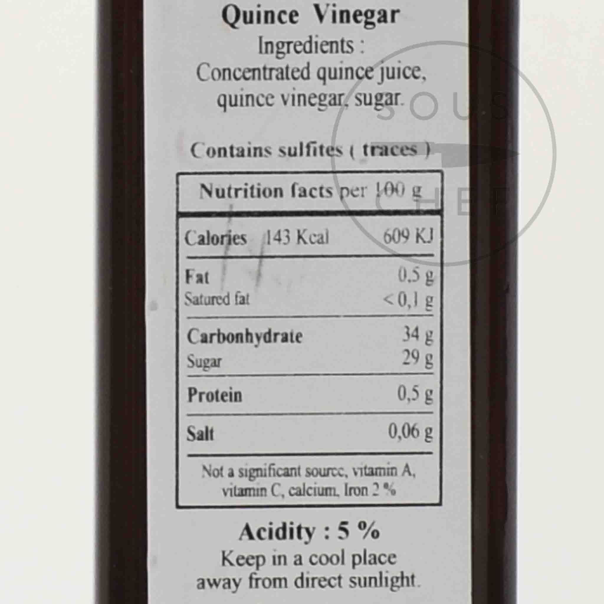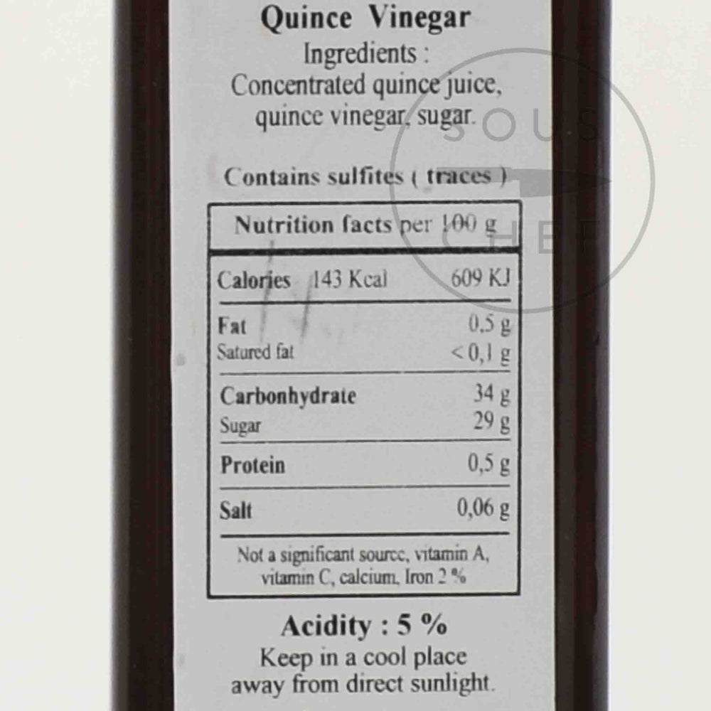 Product formulations and details may change. For the latest ingredients and allergen information always check product packaging prior to consumption. Ingredients: Concentrated quince juice, quince vinegar, sugar. Contains traces of sulphites.