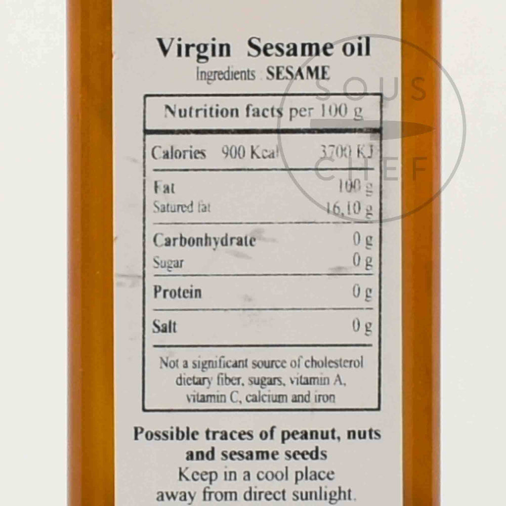 Product formulations and details may change. For the latest ingredients and allergen information always check product packaging prior to consumption. Ingredients: 100% sesame virgin oil