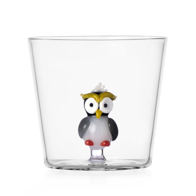 This quirky tumbler is a playful addition to your table. Fill it with cream soda or tropical fruit juice. It’s a great choice for cocktails, too. If the liquid is opaque, the owl will be revealed as you drink.