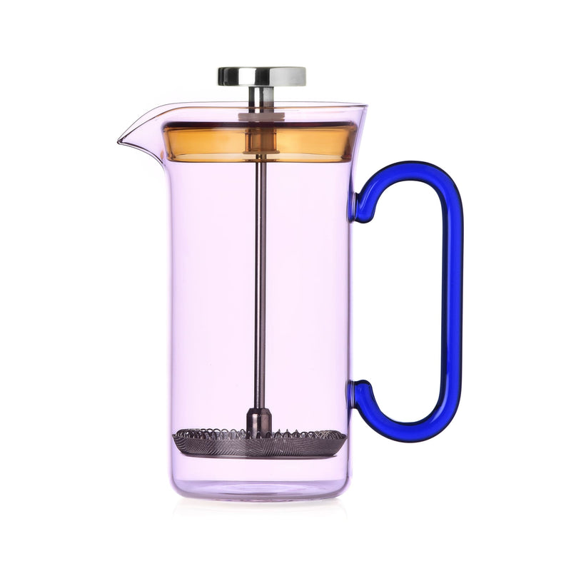 Brew quality coffee at home with the Ichendorf Milano French press. Made from durable borosilicate glass, it adds a pop of colour to your kitchen. It has a pale pink body and dark blue handle.