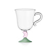 Sip spiced hot chocolate from Ichendorf Milano’s pink moon mug. Made from flame-worked glass, it has a transparent body and dark blue base. A pink crescent moon replaces the traditional handle.