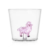 The tumbler is made from flame-worked borosilicate glass. The pink sheep is covered in glass bubbles designed to look like fleece.