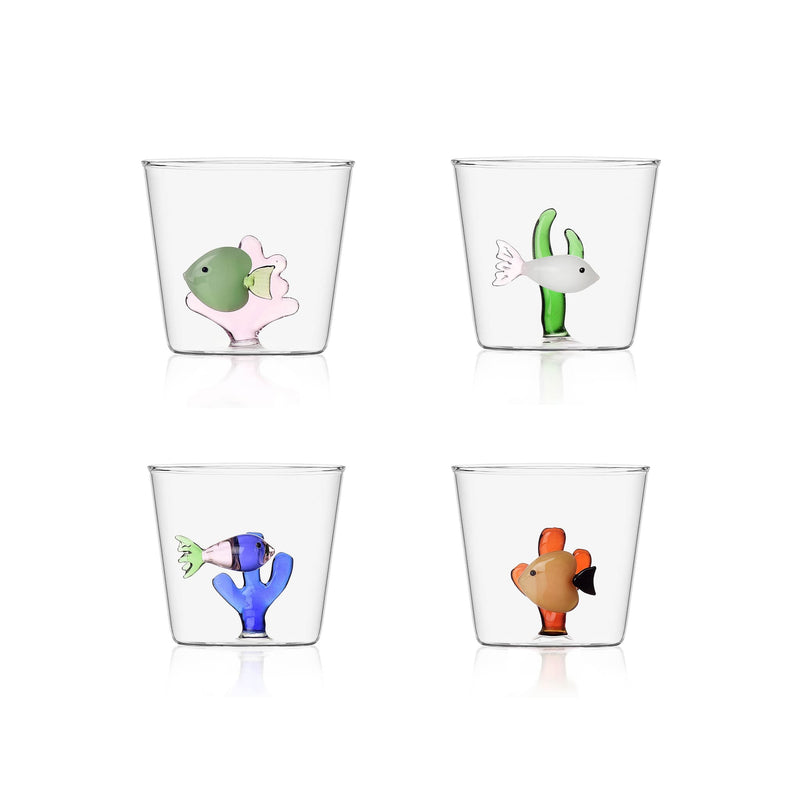Create an ocean-inspired table with Ichendorf Milano’s fish tumblers. Presented as a set of four, these glass tumblers are ideal for entertaining.
