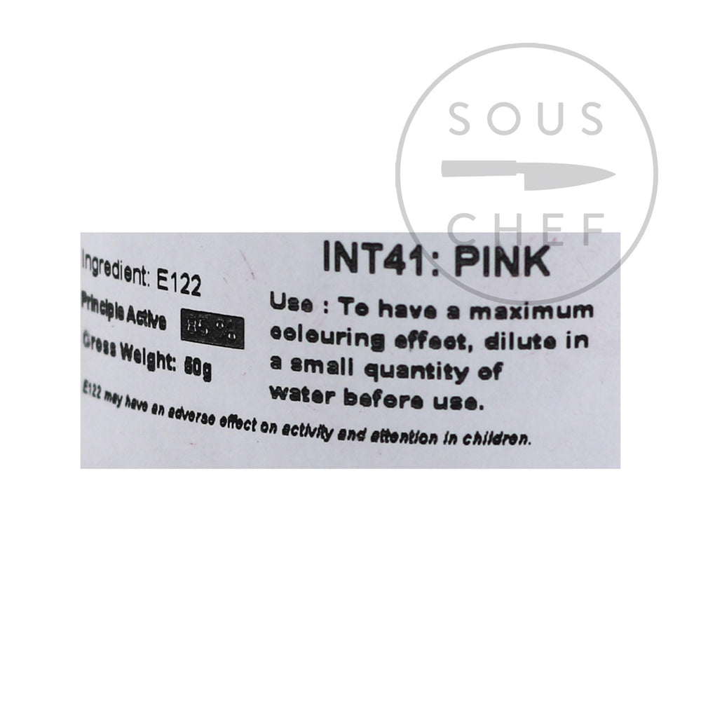 The intense pink food colour is water soluble. For maximum effect, dilute in a small amount of water before use. Recommended use is 1tsp of colouring in 1tsp water to colour 2kg of sugar. Contains 50g, or approx 60ml, or 12 tsp - enough for 24kg sugar.