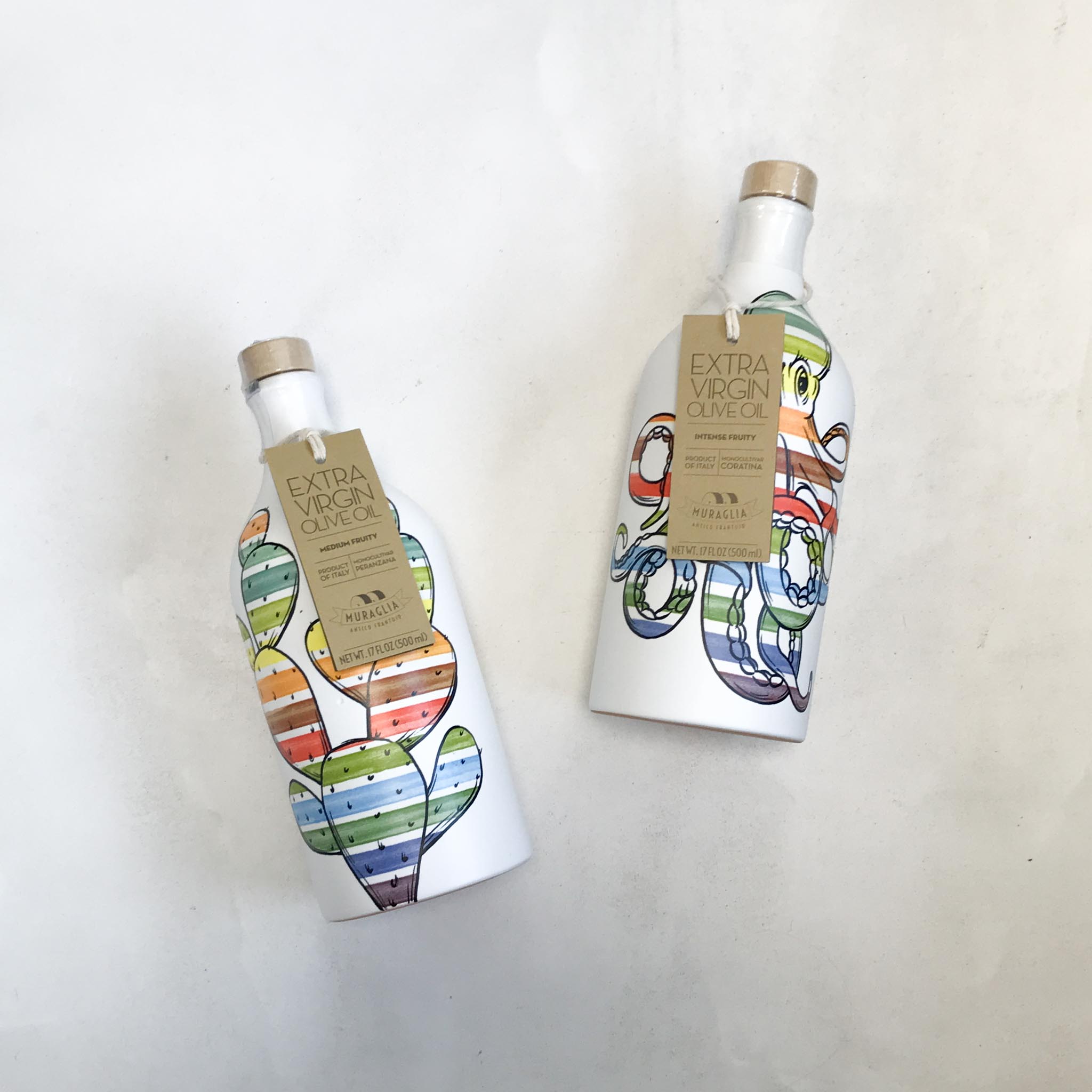Frantoio Muraglia extra virgin olive in a octopus terracotta bottle is not only a fine Italian olive oil, but is also a piece of art for your kitchen.