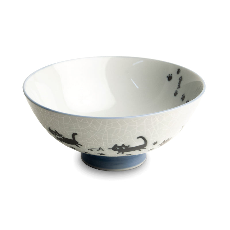 Japanese Cat with Footprints Rice Bowl, 14cm
