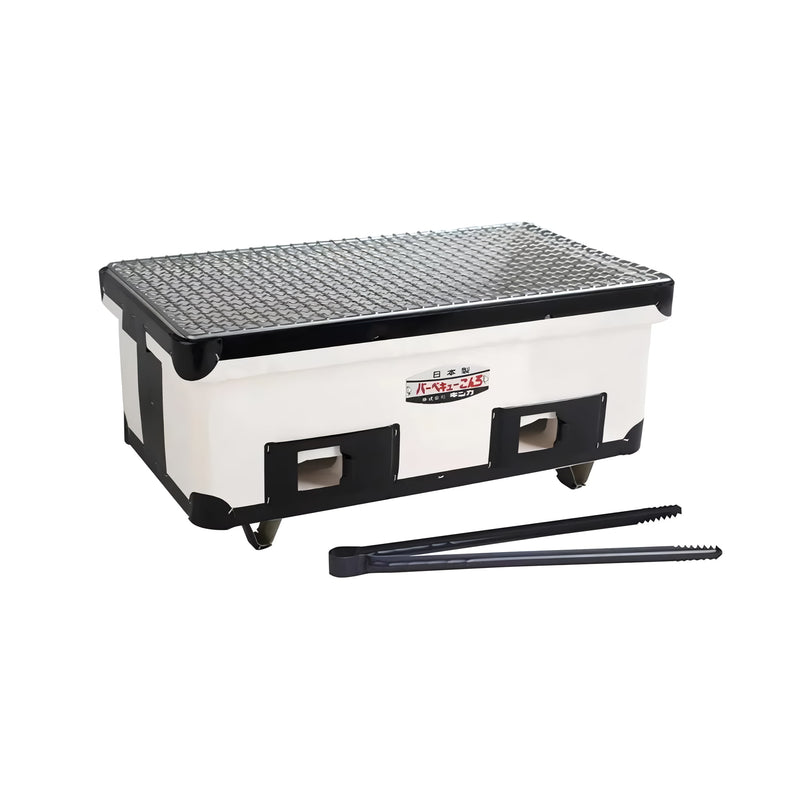 The white Konro Grill is a traditional Japanese barbecue. The large, rectangular cooking surface is perfect for feeding a crowd. Take it outside to cook steaks and skewers over charcoal.