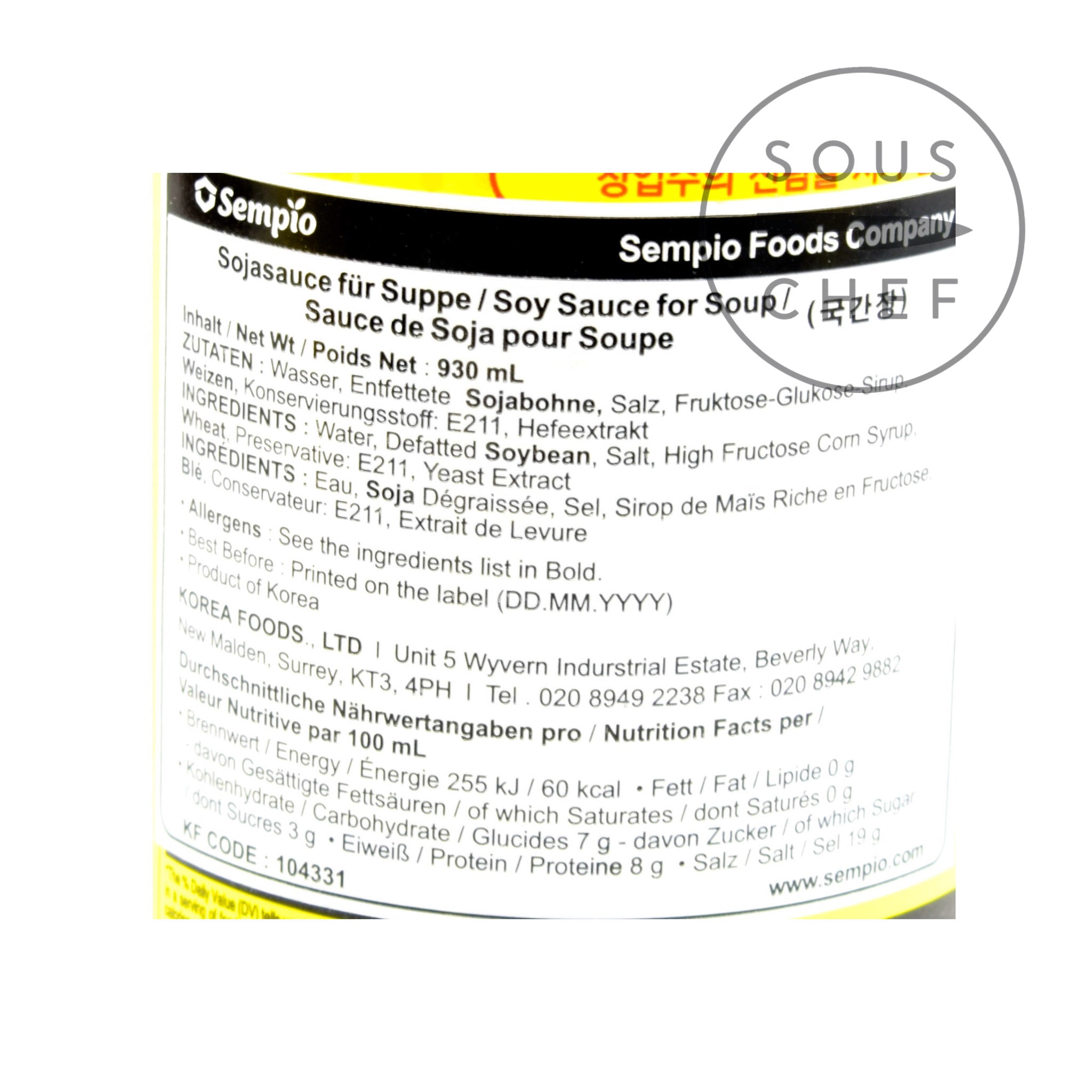 Also known as guk gang jang, Korean soy sauce differs from the Japanese-style soy sauce also used in Korea in both flavour and colour. Its light brown colour is often preferred as it doesn't discolour clear soups as much as other varieties. Its flavour, meanwhile, is less sweet and more salty than regular soy sauce. Korean soy sauce for soup is a by-product from making doenjang, Korean soy bean paste.