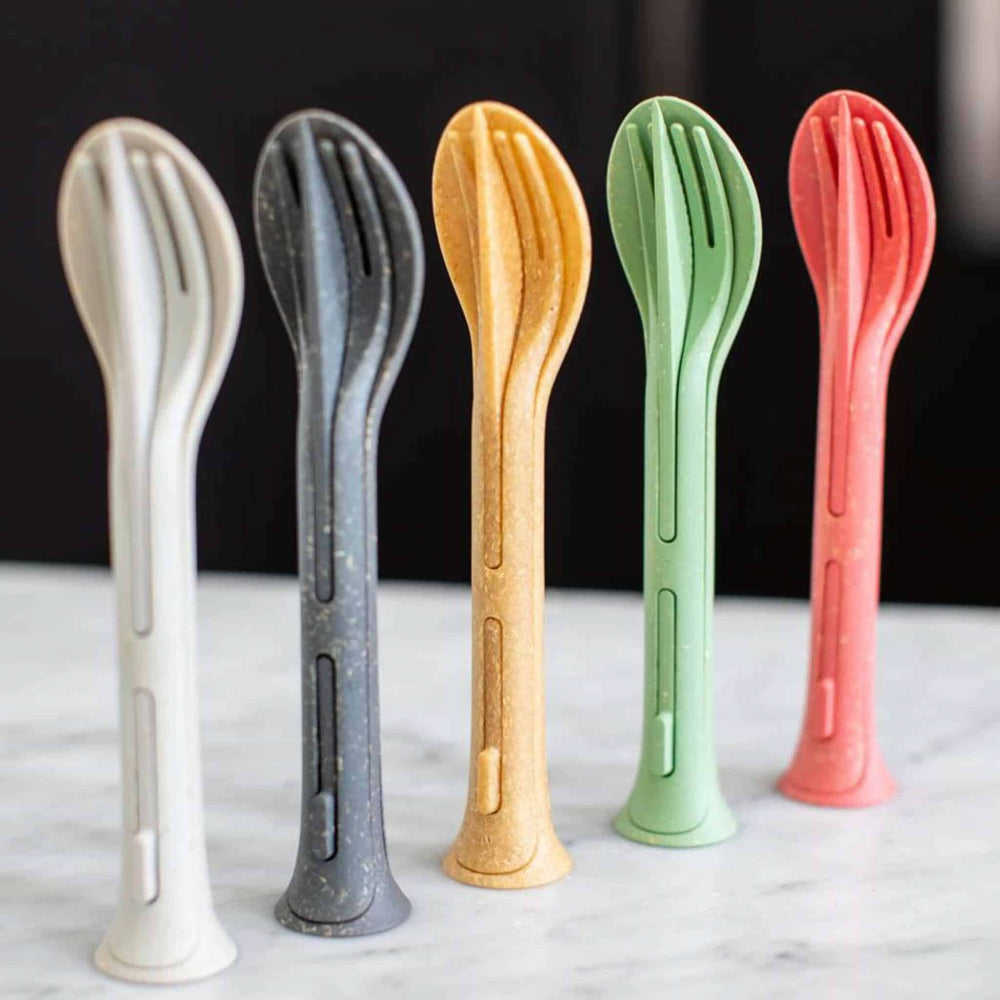 Each stacking cutlery set is made from a unique bio-circular material. They are food-safe and environmentally friendly, being from 100% recycled materials Plus, the cutlery is dishwasher-safe.