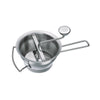 The manual food mill has a smooth-turning hand crank. You can make smooth purées in seconds - no electricity required. It comes with four discs: coarse (5mm), medium (3mm), fine (2.5mm) and extra fine (1.3mm).