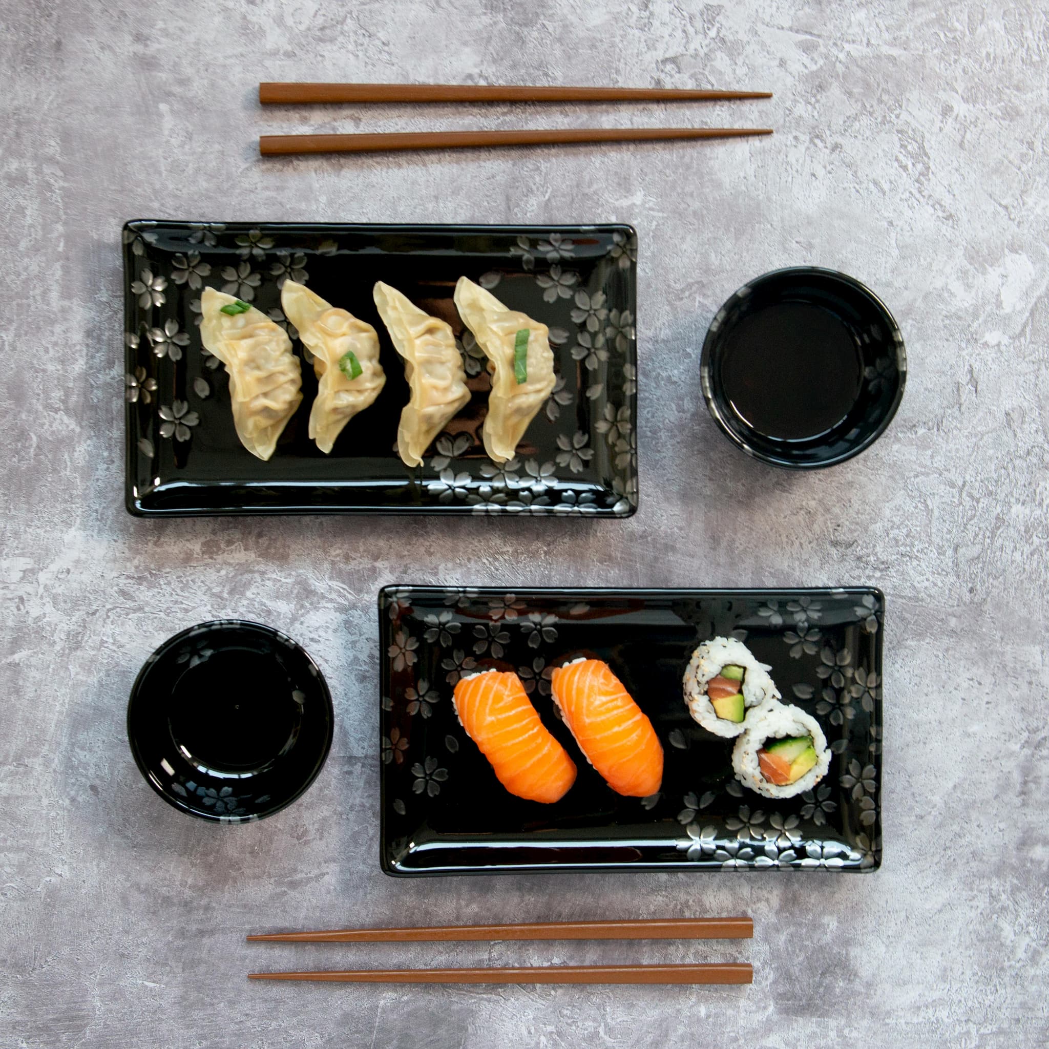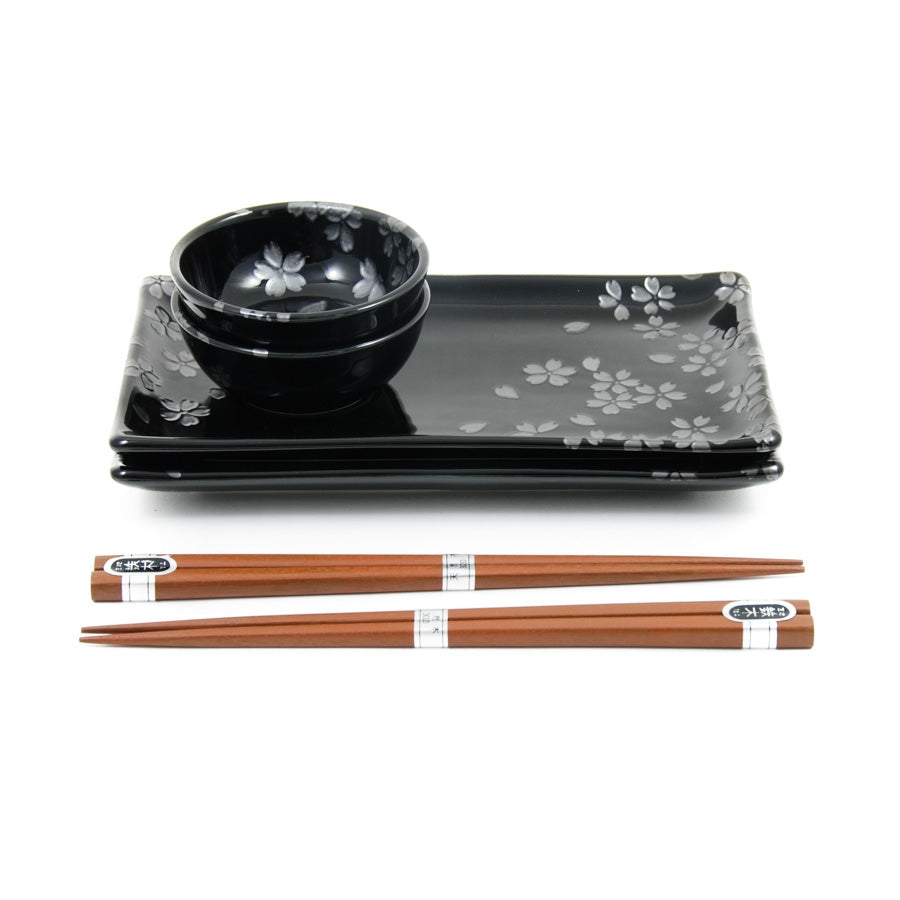 Use the kuro hana sushi serving set for an authentically Japanese sushi dining experience. Kuro Hana means black flower in Japanese. Each set includes:
