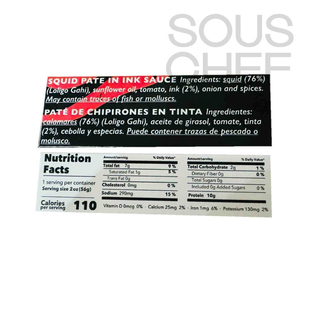 Product formulations and details may change. For the latest ingredients and allergen information always check product packaging prior to consumption. Ingredients: Squid (76%)(lóligo gahi), sunflower oil, tomato, squid ink (2%), onion & spices