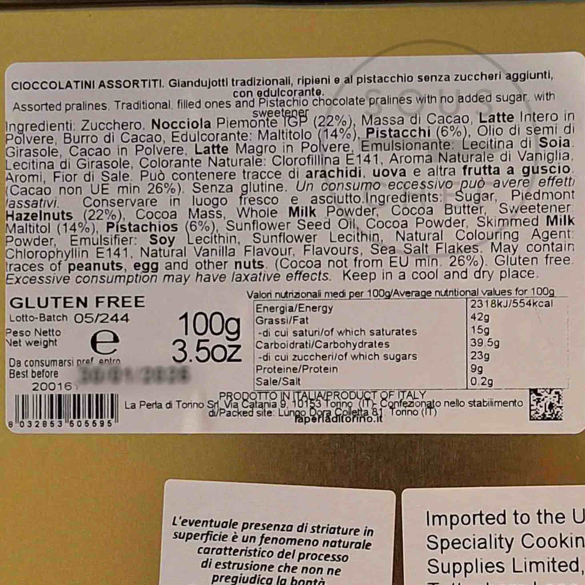 Company founder Sergio Arzilli grew up in his family’s pastry business. But when he discovered he was coeliac, he decided to turn this limitation into an opportunity. He studied the art of chocolate making, and in 1992, founded La Perla di Torino. The company specialises in gluten-free offerings, made in Turin, the spiritual home of gianduja, using the best-quality ingredients, including the Piedmont Tonda Gentile Trilobata Hazelnut.