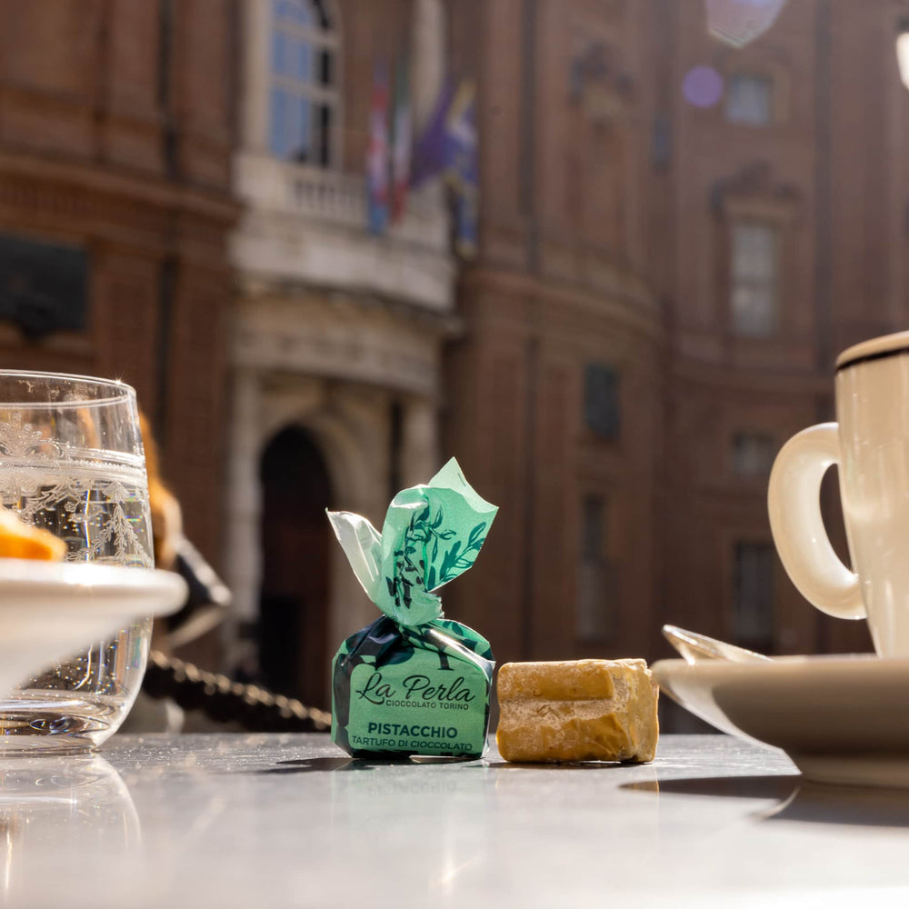 Created by La Perla di Torino, these truffles are an indulgent treat for any time of day. Savour one after dinner or with your morning cappuccino. They are a perfect harmony between white chocolate and lightly salted pistachios.