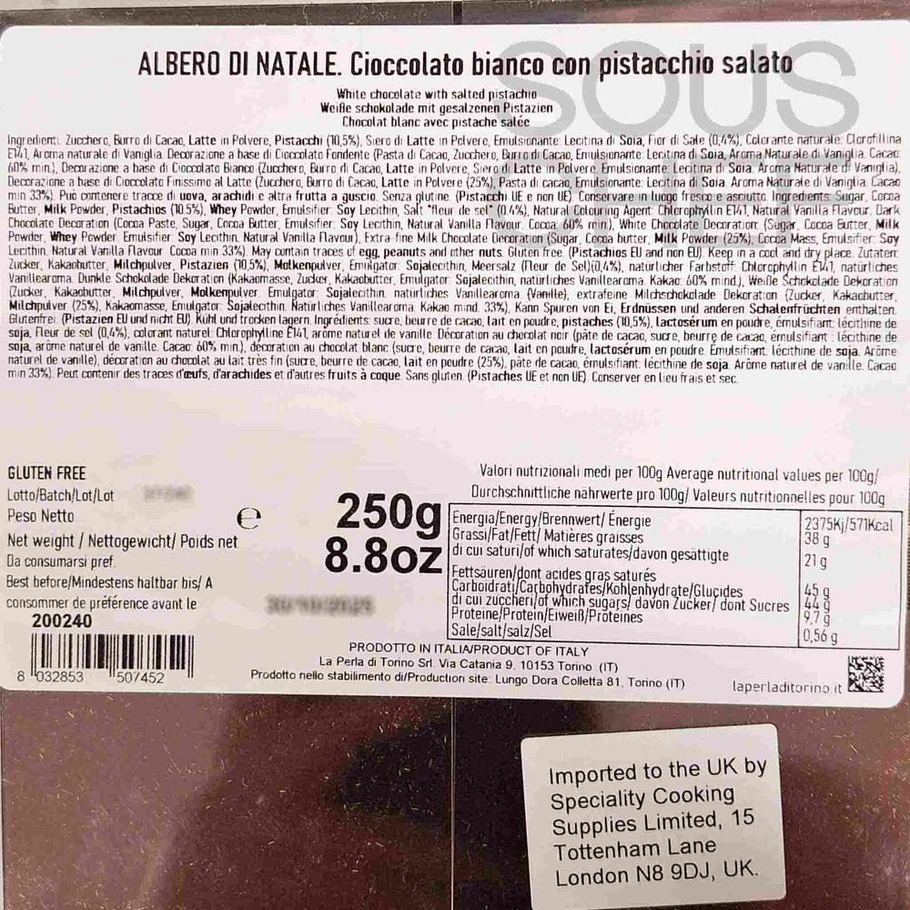 La Perla di Torino Salted Pistachio & White Chocolate Christmas Tree, 250g