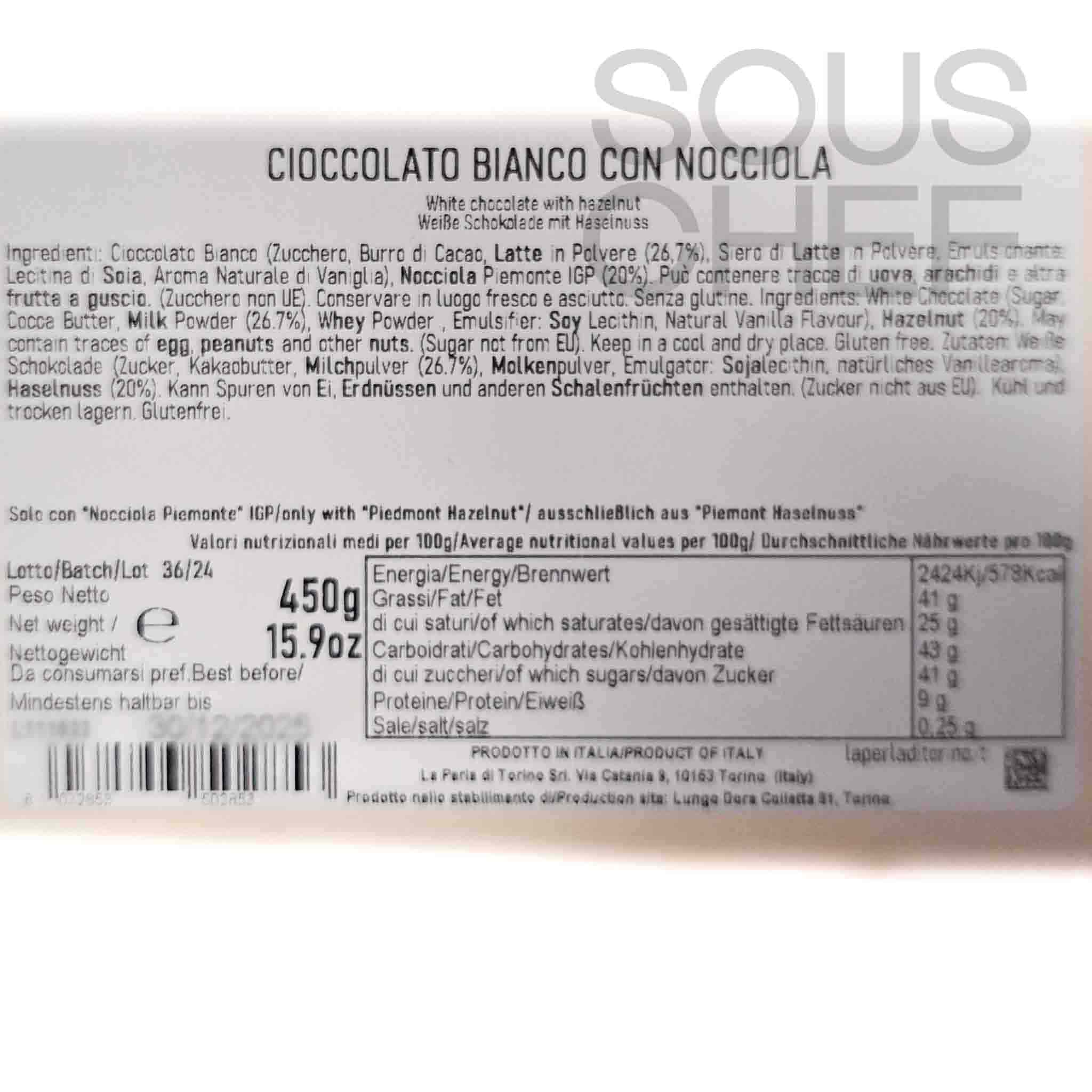 La Perla di Torino White Chocolate Slab with Whole Roasted Hazelnuts, 450g