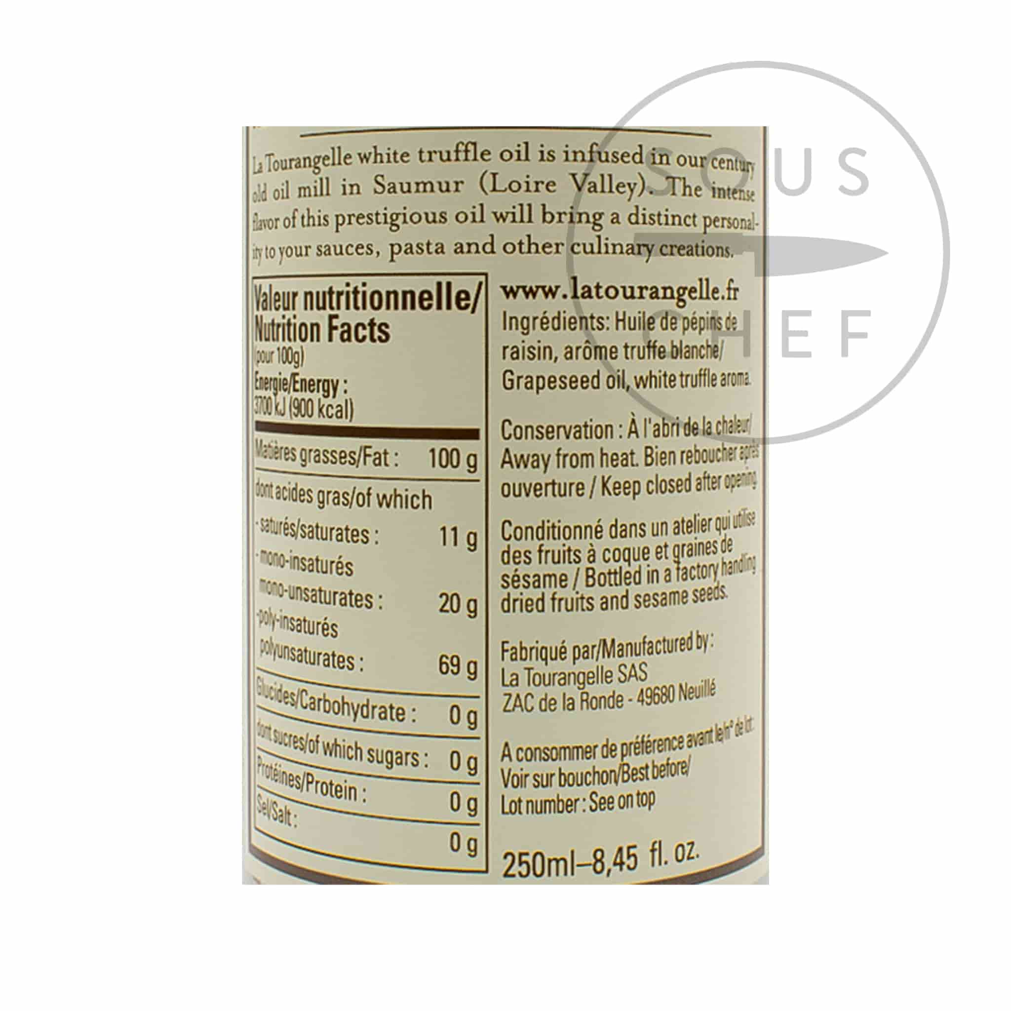 Product formulations and details may change. For the latest ingredients and allergen information always check product packaging prior to consumption. Ingredients: Refined grapeseed oil. White truffle aroma.