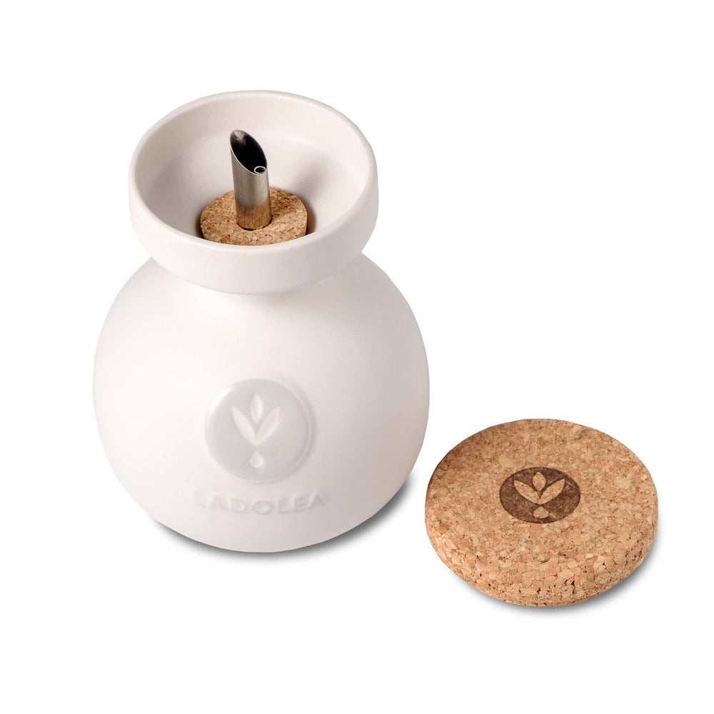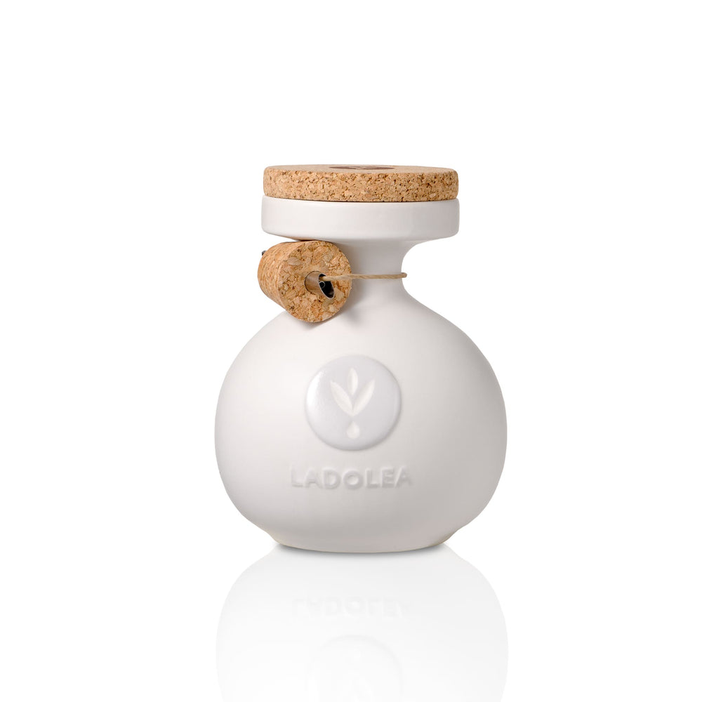 The oil is stored in an attractive ceramic pot which protects it from the light. It is also available in a 500ml tin.