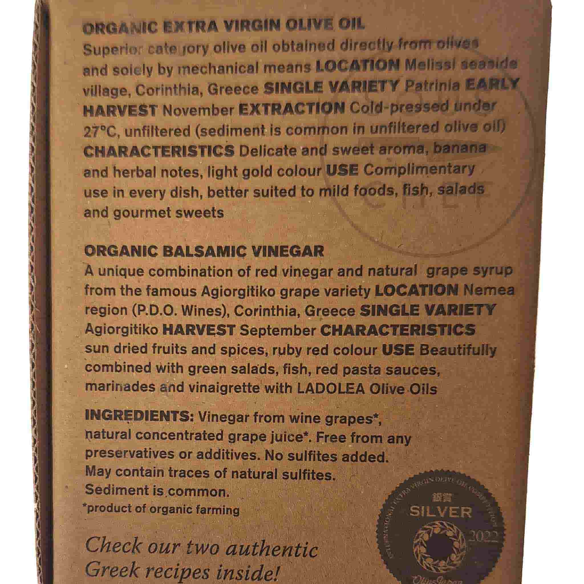 Ladolea Set of 2 Organic Greek Extra Virgin Olive Oil & Sweet Vinegar, 80ml